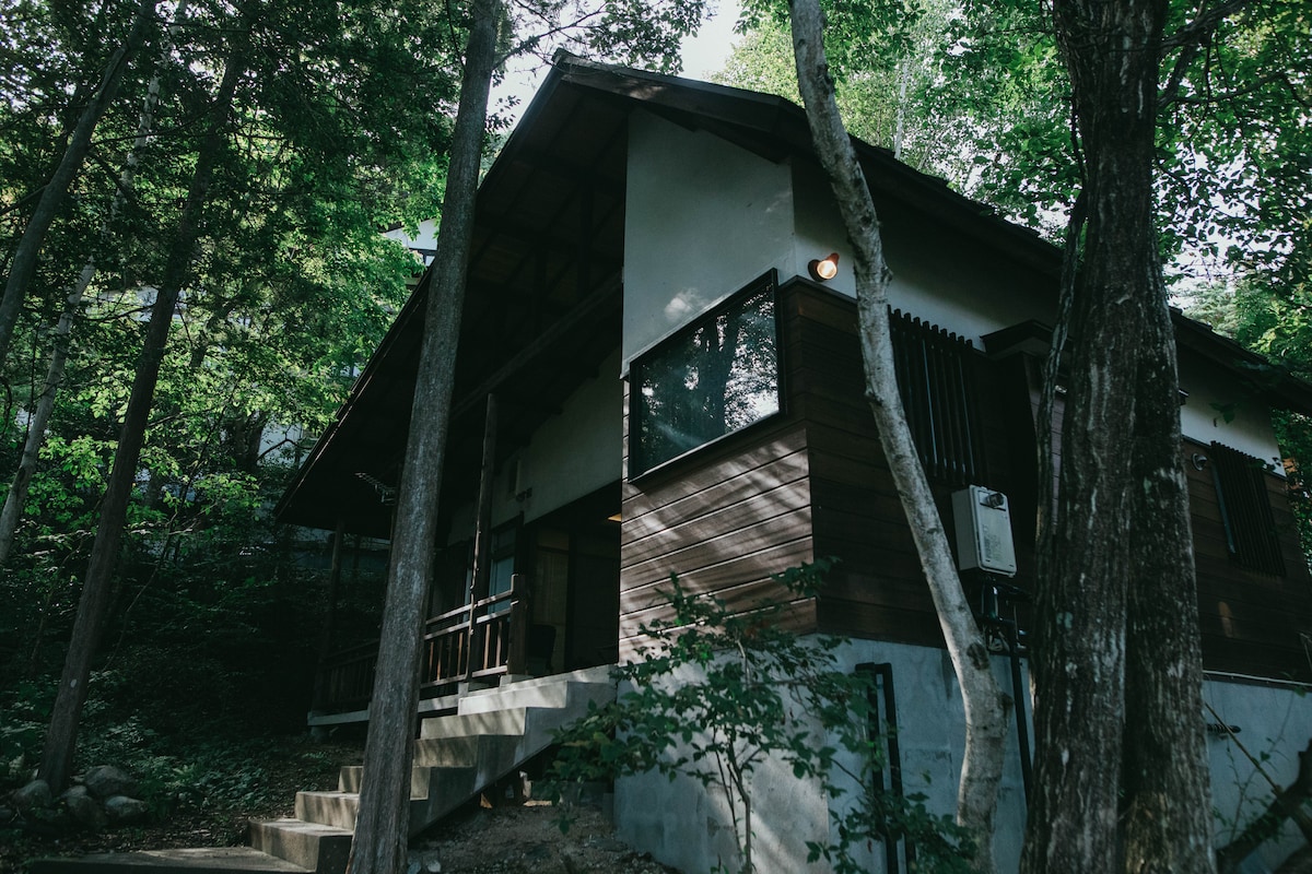 Hakuba ski base, about 1hour by car. Private onsen villa surrounded by nature. Vegetarian & vegan friendly. A smart alternative to crowded Hakuba stays. A private villa in the forests of Azumino with a mineral hot spring and garden. Self check-in, a full kitchen, and clean linens ensure a comfortable stay. Seasonal plant-based Japanese cuisine by Chef Mina Toneri is available by reservation at a nearby traditional farmhouse restaurant and is highly sought after, making it a memorable experience.