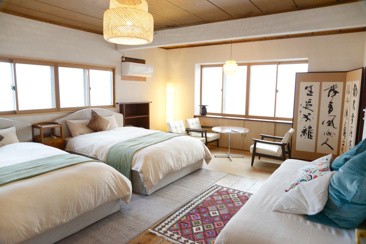 古民家再生協会が実施する再築大賞で最終選考まで残った築130年の古民家です。内装は全てリノベーションしており、光回線のWi-Fi完備、サウナ(1~2名用)もあります。車は4台駐車可能です。家族旅行やリモートワークはもちろん、長期滞在の拠点にもおすすめです。 一般道で日光まで約90分、足利フラワーパークまで約60分、遊園地のとちのきファミリーランドまで約30分で行けますので、観光の拠点としても最適です。 近隣のゴルフ場まで10分程度、イオン等の大型スーパー、コンビニまで10〜15分程度です。 最大で4名様まで宿泊可能ですが、基本料金は2名様までです。追加人数に応じて1名様あたり5,000円の追加料金をいただいております。 BBQを行う場合は必ず予約時にお申し出ください。木炭はお客様においてご用意ください。 近隣住民への配慮から、以下の行為は厳禁です。 ・日が落ちてからのBBQ ・家の表側でのBBQ ・花火 ・屋内外にかかわらず大音量で音楽等を流す ・日が落ちてから外で騒ぐ ・飲酒して大声で騒ぐ ・22時以降、室内での大声での会話 これらを遵守いただける方のみご予約下さい。