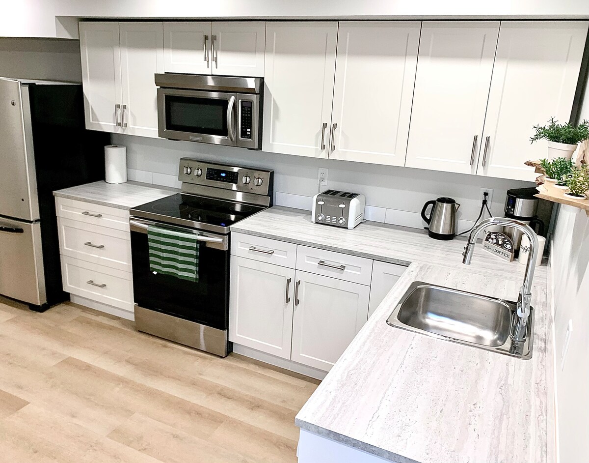 Relax and enjoy the unique, tropical Ambiente that brings you in vacation mode! Our newly renovated, sparkling clean basement suite, with its spacious, fully equipped kitchen will make you feel comfortable right aways! 🪴parking 2 🛻 🪴beaches 15 min 🪴hiking trails 4 min 🪴stores/mall/restaurants 5 min 🪴Silver Star Ski resort 20 min Enjoy a relaxing soak in the bath tub, a cosy movie night or simply unwind at your private green patio with barbecue! Short or Long-term stays welcomed. 🌿
