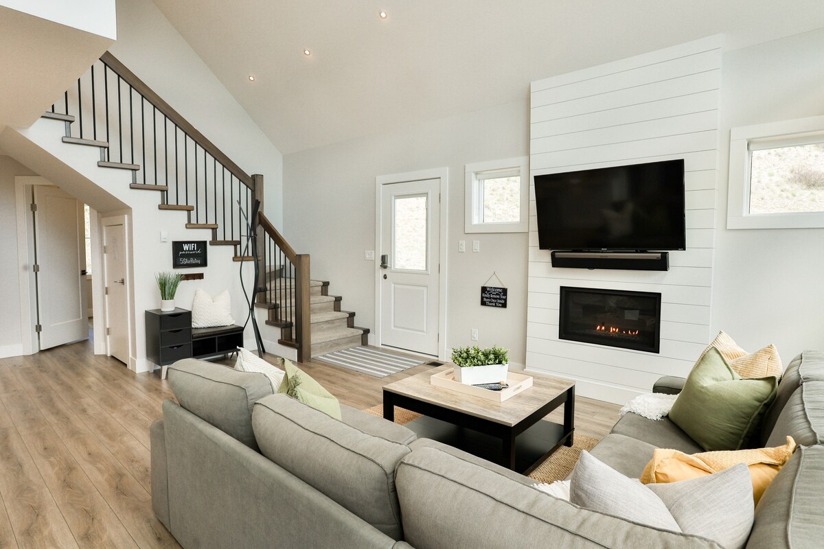This modern and spacious cottage offers guests a luxury stay with views of lake Okanagan. High end finishings, access to common swimming pools, hot tubs, tennis courts, mini golf and parks. The upper deck is great for suntanning and enjoying the views while the large covered patio on the main floor is great for outdoor entertaining, BBQing or enjoying a cozy fire in the evening. Our cottage comfortably can sleep 5-8 guests. We have 2 playpens and a high chair for your little ones.