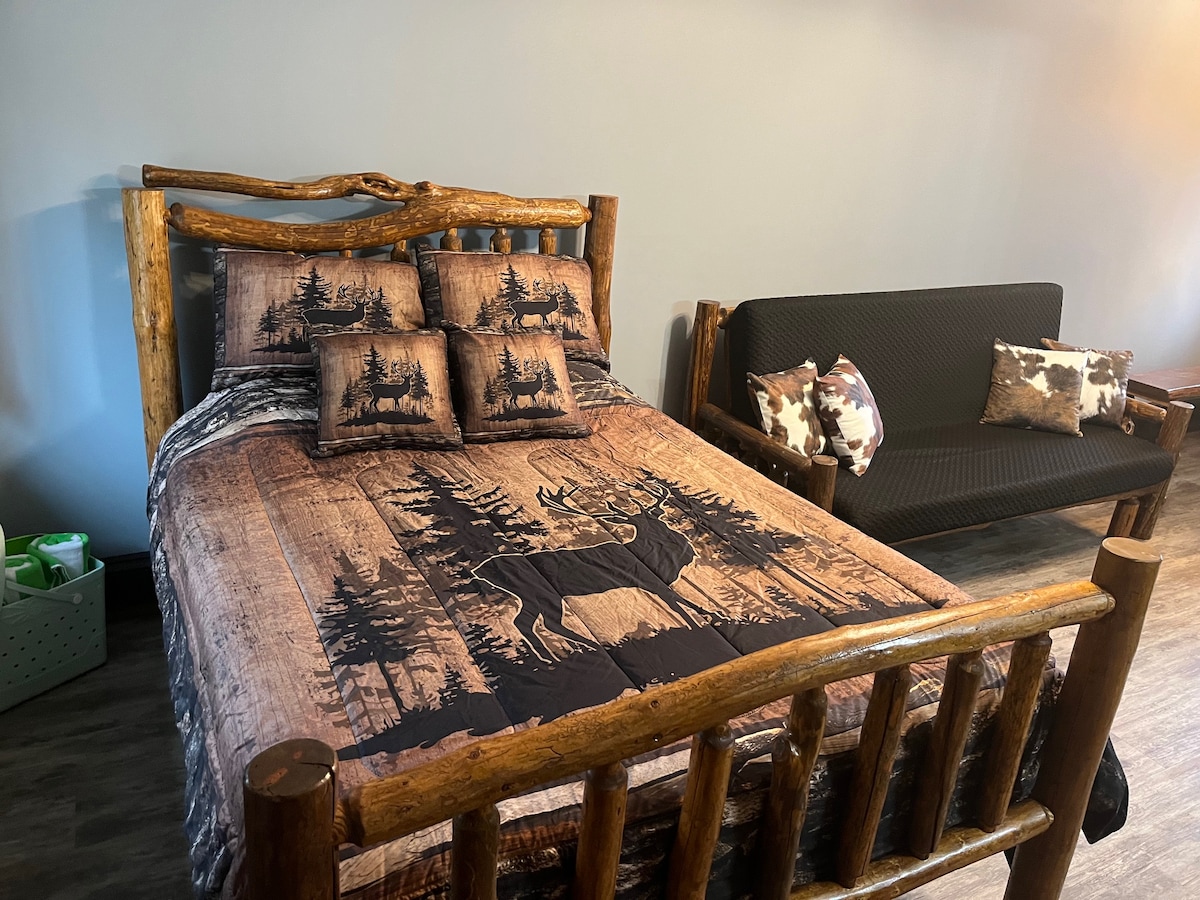 This is the ideal place for someone just needing a place to sleep. 45 from Kamloops + 45 minutes to Wells Gray or Sun Peaks! Please note that there is no kitchen, just a mini-fridge and coffee machine, no closet, just a dresser. There is a family with young children above you, and an occupied suite attached to your suite with a double locking door between you). You are the only person accessing the bathroom, bedroom and gym during your stay. A cot is also available.