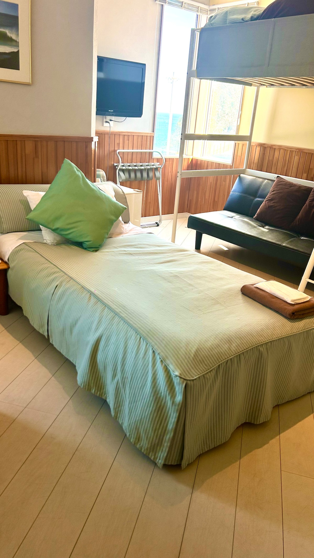 海辺で”暮らすように滞在する”をコンセプトにした住宅並みの設備を整えたお部屋です。コンドミニアムの快適さと自然の多い環境を兼ね揃えた理想的な滞在場所です。 広々としたオーシャンビューテラスにはサウナがついています。自分の好みの温度で好きな時間に、セルフロウリュも楽しみながら利用することができます。海の音に耳を傾けながら日常を忘れて整いタイムを。テラスにはのんびりと楽しめる卓上バーベキューグリルをご用意しております。時を忘れて屋外での食事を存分にお楽しみください。時に談話しながら、基本的には静かな時を過ごすための施設です。 白浜海岸より徒歩8分。マリンスポーツを楽しみながらご滞在ください。 滞在中にお仕事をしたり、ご友人などを招くこともできるビジタールームもあります。2泊以上からが割引価格になります。長期滞在にご利用しやすい施設となっております。 サウナタイプのお部屋は2部屋あり、1階と2階にそれぞれ1部屋ずつあります。間取りやお色味は若干異なりますが基本的な広さ、備品などは同等のものをご用意しております。写真のお部屋と異なる場合がございます。あらかじめご了承ください。