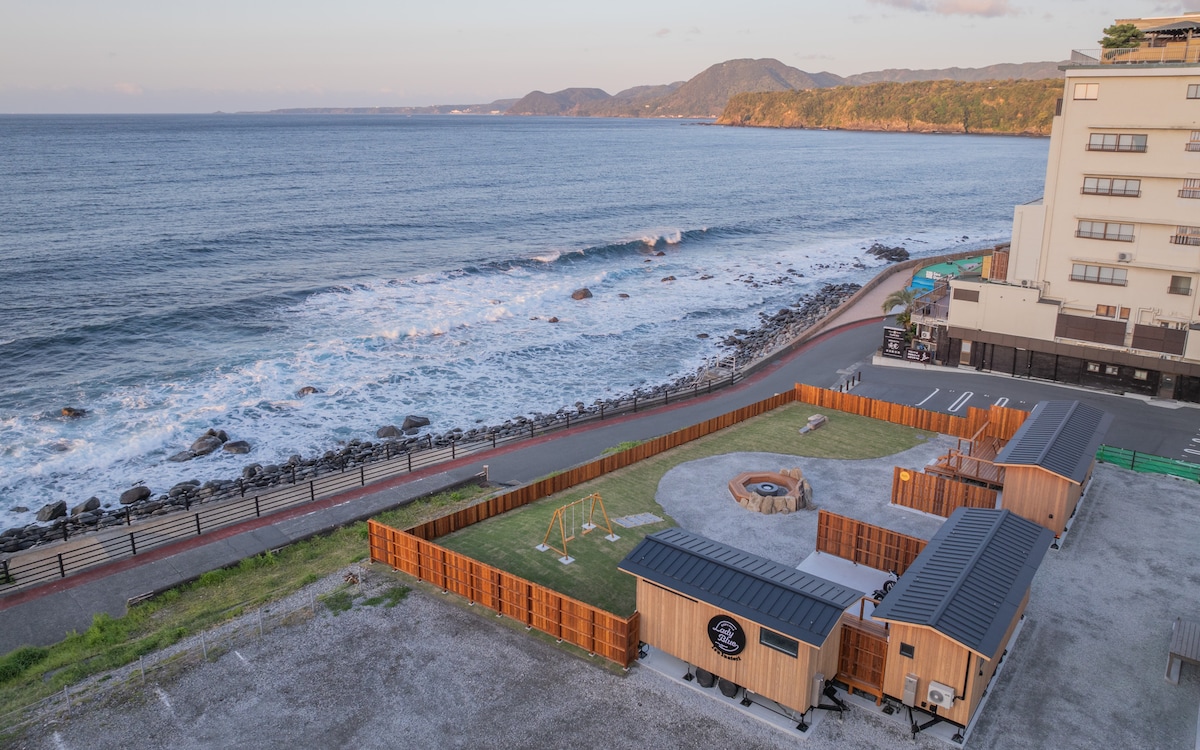 海のすぐそばに佇む、全2棟まるごと貸切のプライベートヴィラ。 大きな窓からは水平線を一望でき、刻々と変わる海と空の表情を独り占めできます。 こちらでは 2棟+芝生の庭をすべて貸切 に。 まわりを気にせず、BBQ・焚き火・外遊び・屋外シアターをのびのびと楽しめます。 ■ 2棟の特徴 【nami棟】 ・ダイニングテーブル ・専用バスルーム&リラックスルーム(別棟) ・マッサージチェア ・洗濯機 ・ミニキッチン “くつろぎ”に特化した、長期滞在にも向いたゆったり空間。 【tsuki棟】 ・ローテーブル&ヨギボー ・ほどよくコンパクトで居心地のよい間取り ・ユニットバス ・ミニキッチン グループやファミリーで使いやすいカジュアルな空間です。 最大 8名まで宿泊可能。 「みんなで集まる時間」と「ほどよいプライベート」 の両立が叶うのが魅力です。 ■ 庭・アウトドア設備(すべて貸切) ・広々とした芝生のプライベートガーデン ・無料で使えるBBQコンロ ・ファイヤーピット お子さまが走り回ったり、焚き火を囲んだりと、 この場所ならではの体験 を気軽に楽しめます。