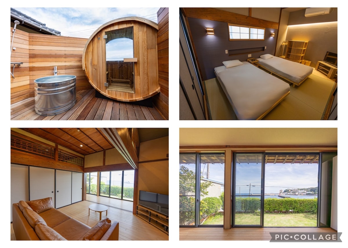 Authentic Finnish barrel sauna included Private villa with self-löyly for your own private and luxurious time Spacious living room of 40 square meters in modern style Cinema-like space with a large 4k projector =Access 12 minutes walk from Izu Inatori Station Car share available from 220 yen for 15min at Izu Inatori station, 1min walk from the inn. Parking space is available. =Nearby tourist attractions Izu Animal Kingdom 10 min Kawazu Cherry Blossoms 12 min Atagawa Banana Crocodile Park 15min