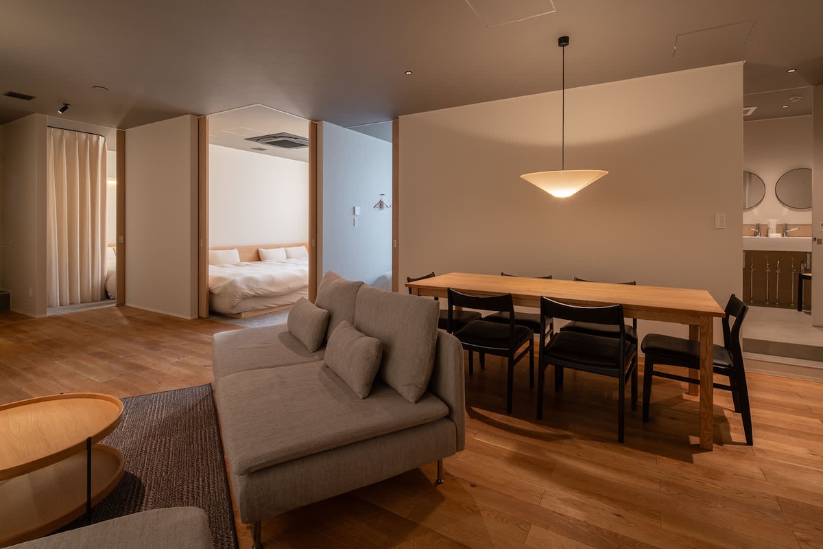 整套公寓只归1组/位于京都中心/车站步行6分钟/配备Wi-Fi/可让6位房客入住/高级优雅的现代民宿