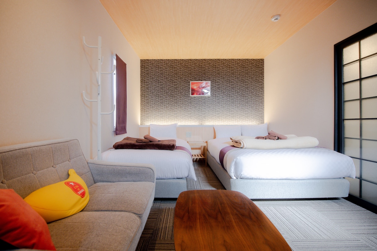 シングルベッド2台、ソファベッド2台、調理器具とキッチン付き、4名様まで宿泊可能なお部屋です。 <おすすめPOINT> ■清水五条駅から徒歩圏内の立地で観光に便利 ■鍵はスマートロックでキーレス滞在 ■キッチンには調理器具・湯沸しポット・電子レンジ有り ■長期滞在や出張にもピッタリ <その他アメニティ類> 空気清浄機・エアコン・ヘアドライヤー・シャンプー・コンディショナー ボディソープ・ハンガー 【電車】 ・清水五条駅 出口4から徒歩7分 【バス】 ・京都駅から五条坂下車 徒歩3分 【車】 ・京都駅から10分