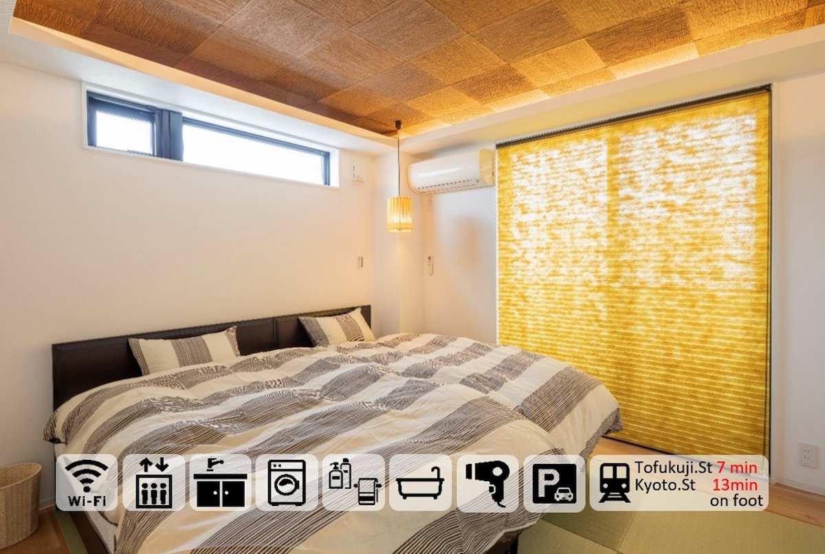 【被选择的8个理由】 ◎位置很好,距京都站2站(4分钟) ◎您可以根据您的需求进行灵活的预订,例如出租每一层或整栋大楼。 ◎可根据您的要求容纳1至20人。 ◎采用拨盘式锁,无需携带钥匙 ◎公共区域配有电热水壶、微波炉、投币式洗衣机/烘干机。 ◎每人提供一张床 ◎我们使用强调睡眠舒适度的床垫、枕头、被子,可以提供您好的睡眠舒适度,舒缓旅途的疲劳。 ◎可以观看Netflix *不能观看当地电视节目。 ◎最近的车站附近还有超市和便利店! 位置对于长期居住的客户来说非常方便。 ▼驾车前来的顾客(收费停车信息) ・Times 壬生川五条 (可用停车位:2辆) 地址:京都市下京区中道寺前田町9 *步行5分钟 ・Times 大宫五条南 (可用停车位:5辆车) 地址:京都市下京区堀野上町521 *步行6分钟 ▼从关西国际机场到住宿最近车站的交通方式 JR京都站~丹波口【乘电车4分钟】