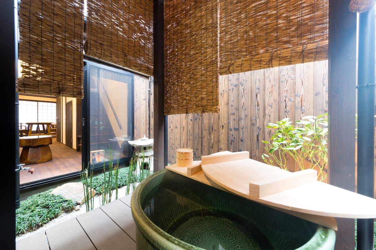 从京阪墨染站步行约3分钟。前往大阪也很方便。在设有露天浴池的民宿享受悠闲时光