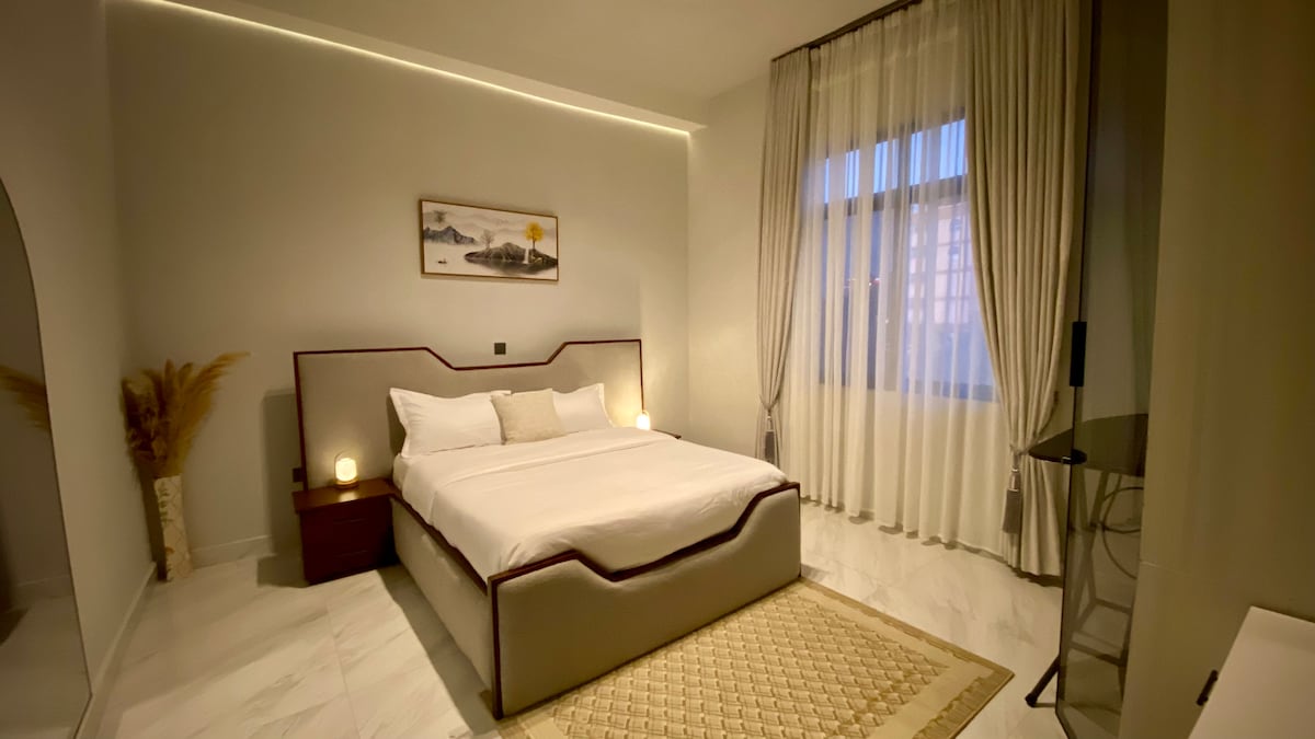 Relax and unwind in this upper floor(3rd floor) elegant 1-bedroom apartment. Enjoy a peaceful stay with a beautiful balcony view, fast Wi-Fi, and a fully equipped kitchen. Just minutes walk away from restaurants, supermarkets, gym and all major amenities. Perfect for holidaymakers, business travelers, and couples seeking comfort, convenience, and style — your perfect city escape awaits