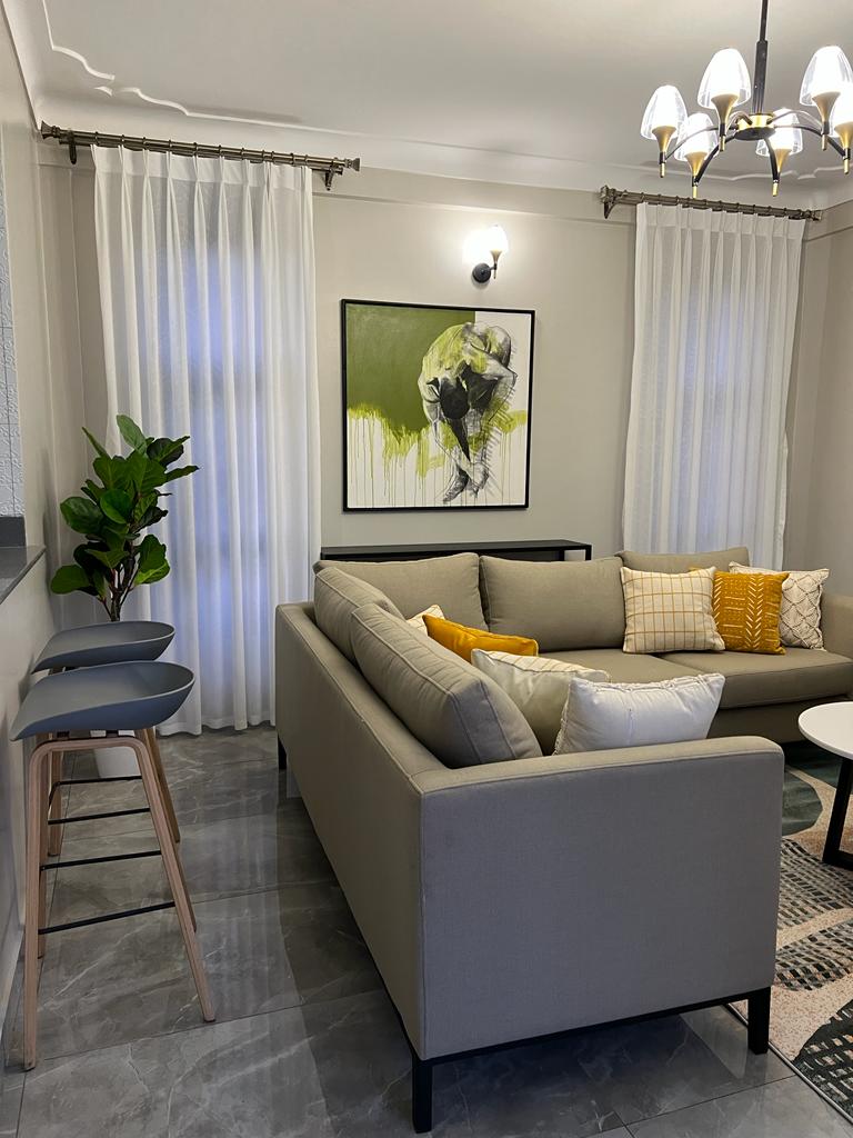 Experience a chic modern 1-bedroom retreat on Bukoto - Kisasi Rd. This fully furnished apartment boasts a spacious layout, king size bed, well-equipped kitchen complete with a coffee maker, blender. It is beautifully designed with stylish décor and top-quality fittings. Our onsite caretaker ensures a clean apt for relaxation and is ready to help with your requests. Located just 5min from Kabira Country Club in an accessible area it's perfect for exploring the city or unwinding after a busy day.