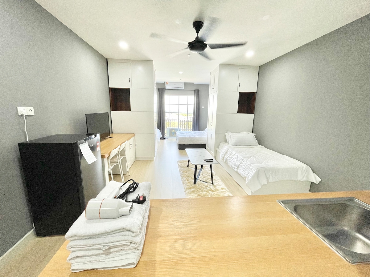 Take a break and unwind at this comfy studio apartment facing the North with iconic rolling mountain views (Titiwangsa of Malaysia)! Amenities are provided to ensure a comfy stay. Come and have a go with our netflix preinstalled for you to enjoy! Easy access to the local bus station or take a grab to town! A short drive to UTAR & TARUC! Sleep up to 6 people with 2 more extra floor mattresses!