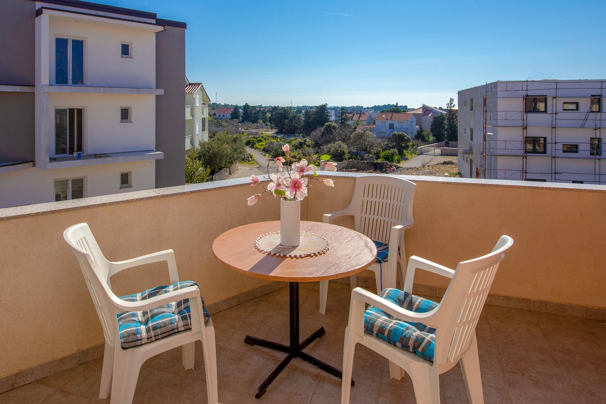 U ponudi su jedan veći apartman ,jedan manji i studio.Apartmani su novo uređeni, sa osiguranim parkirnim mjestima, u samom centru . U blizini ACI marina, nogometno igralište, škola, plaža udaljena 200 metara. Mogućnost korištenja roštilja na vanjskoj terasi. Apartmani su sa pogledom na more i iz spavaćih soba i iz boravka. Svaka soba ima vlastiti balkon i vlastitu kupaonicu. Boravak uključujući kuhinju stol za objed i terasu sa pogledom na more. Kućni ljubimci dozvoljeni uz dodatnu nadoplatu.