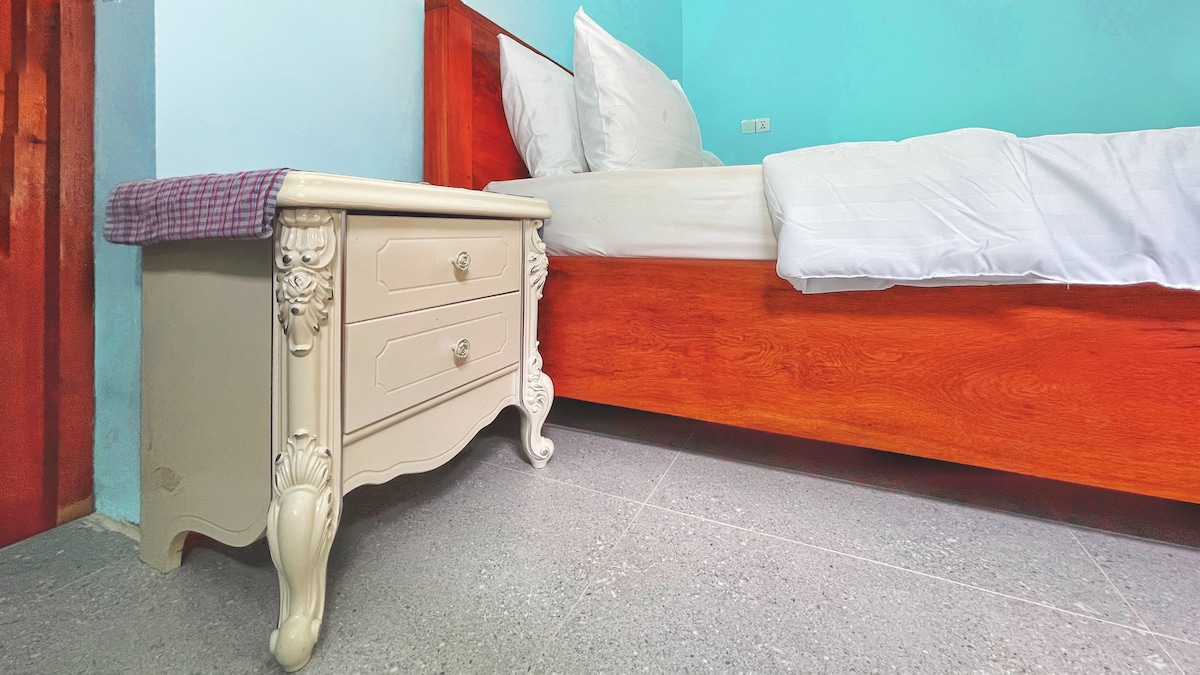 Welcome to our village accommodation! Our room, originally designed as volunteer accommodation for Sala Monkey Language and Arts School, is now available for you to experience the countryside of Kep. While not a luxury suite, the room does offer a comfortable stay with some essential amenities. It's a great way to experience rural life and give back while visiting Cambodia. The rainy season provides a vibrant green backdrop of rice paddies along with a chorus of frogs to sing you to sleep.