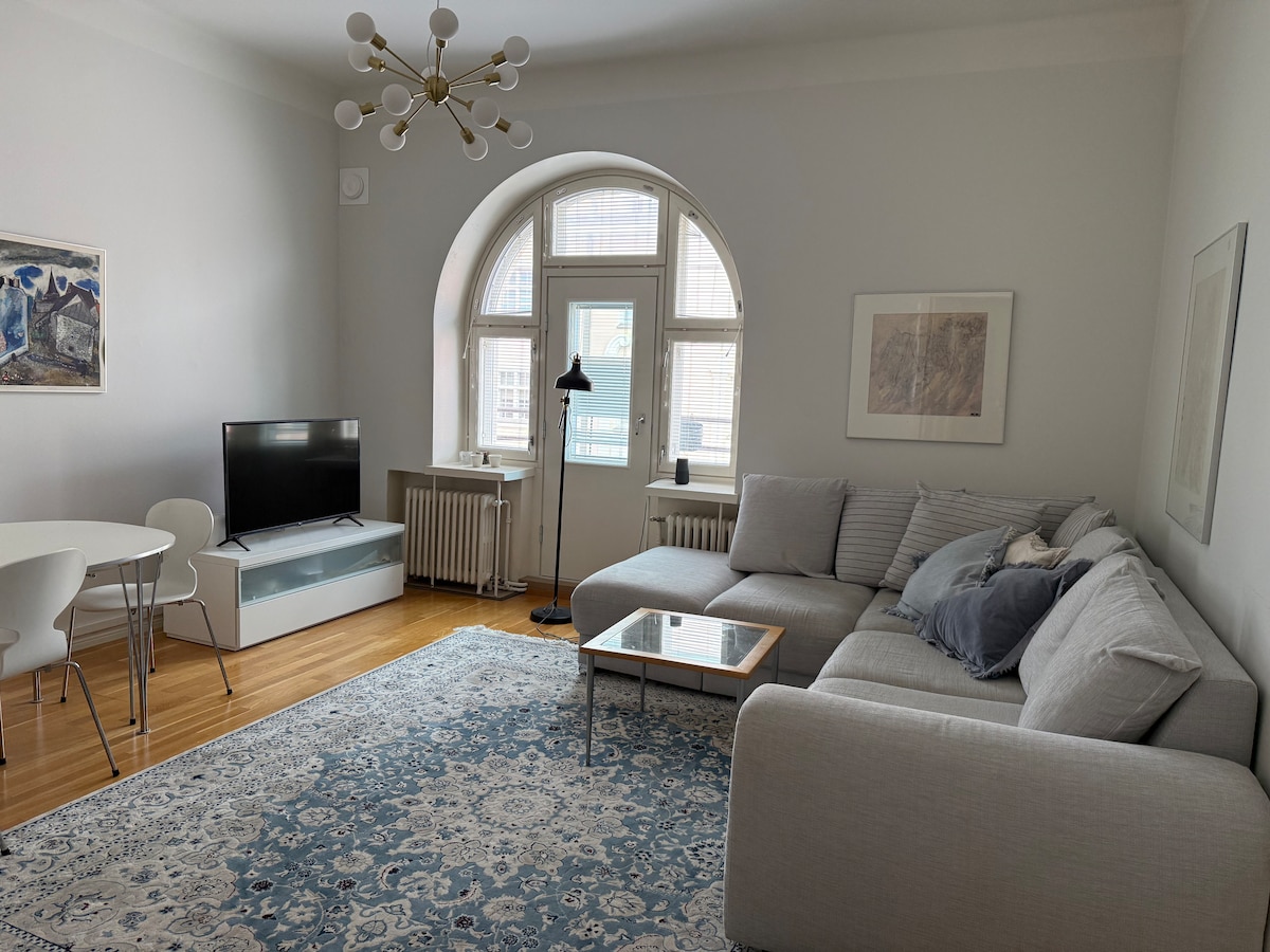 Beautiful and peaceful 42.5 m2 apartment with a French door balcony in the heart of Helsinki. Find everything nearby - restaurants, boutiques, parks and culture. This one's a gem! Fully equipped kitchen, bedroom with double bed and livingroom area with sofa-bed for two makes this suitable for a solo traveller, a couple, a family or a small group of friends (accommodates 2-4 travellers). Also baby crib available upon request. Building has an elevator and is also ideal to guests with a wheelchair.
