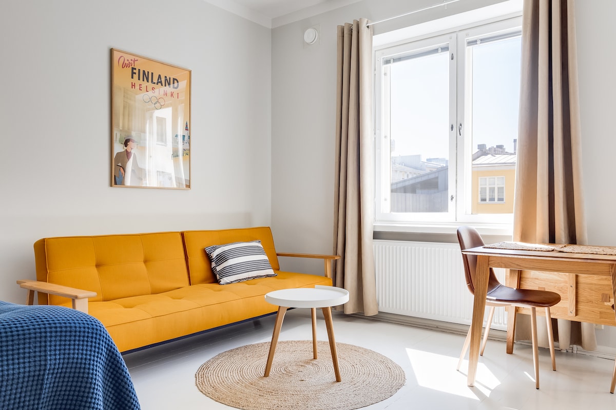 Welcome to a bright and lovely 26 m² studio in the heart of Helsinki, just a short walk from Kamppi and the city's main attractions. This charming apartment accommodates up to four guests with a comfortable queen-size bed and a loft bed. Located on the 4th floor of a beautiful historic building without an elevator. Explore Helsinki like a local from this central base and relax in the comfort of your own cozy studio. This studio offers everything you need
