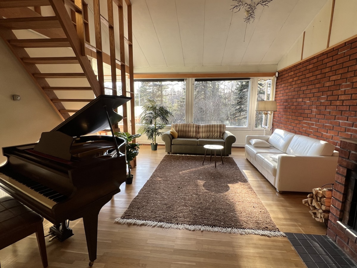 Experience Penthouse living in central Helsinki. Enjoy the glassed-in sun balcony – warm even in late autumn if sun shines (+a spot heater). Unwind in a Finnish sauna, then step out to the balcony with views for a classic hot–cold contrast – a Nordic wellness ritual that refreshes body and mind. ⛸ Winter: Free ice rink 50m away awaits – we got skates! ✔ Flexible check-in Gym 🛏 2 BR 🅿 Free Parking (EV) 📺 70" Disney+ ⌘12 min to center 👣 Walkable 🏪 Grocery 60m, 24/7 🍕 Good restaurants Park