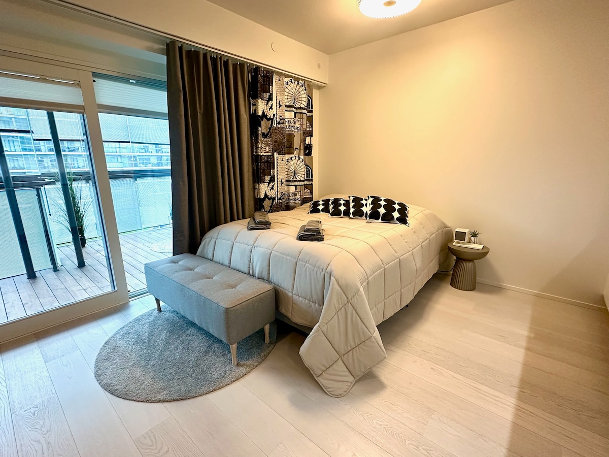 Welcome to our beautifully designed Scandinavian-style home with a private sauna! Located on top of a huge shopping mall Tripla, our spacious (59,5 sqm) 1 BR apartment is the perfect base for your stay in Helsinki. Location - Easy access from everywhere (train, bus, tram) - Train takes 5 min to city centre and 22 min to airport - Chargeable Parking available, ask for details - 24/7 big supermarket downstairs