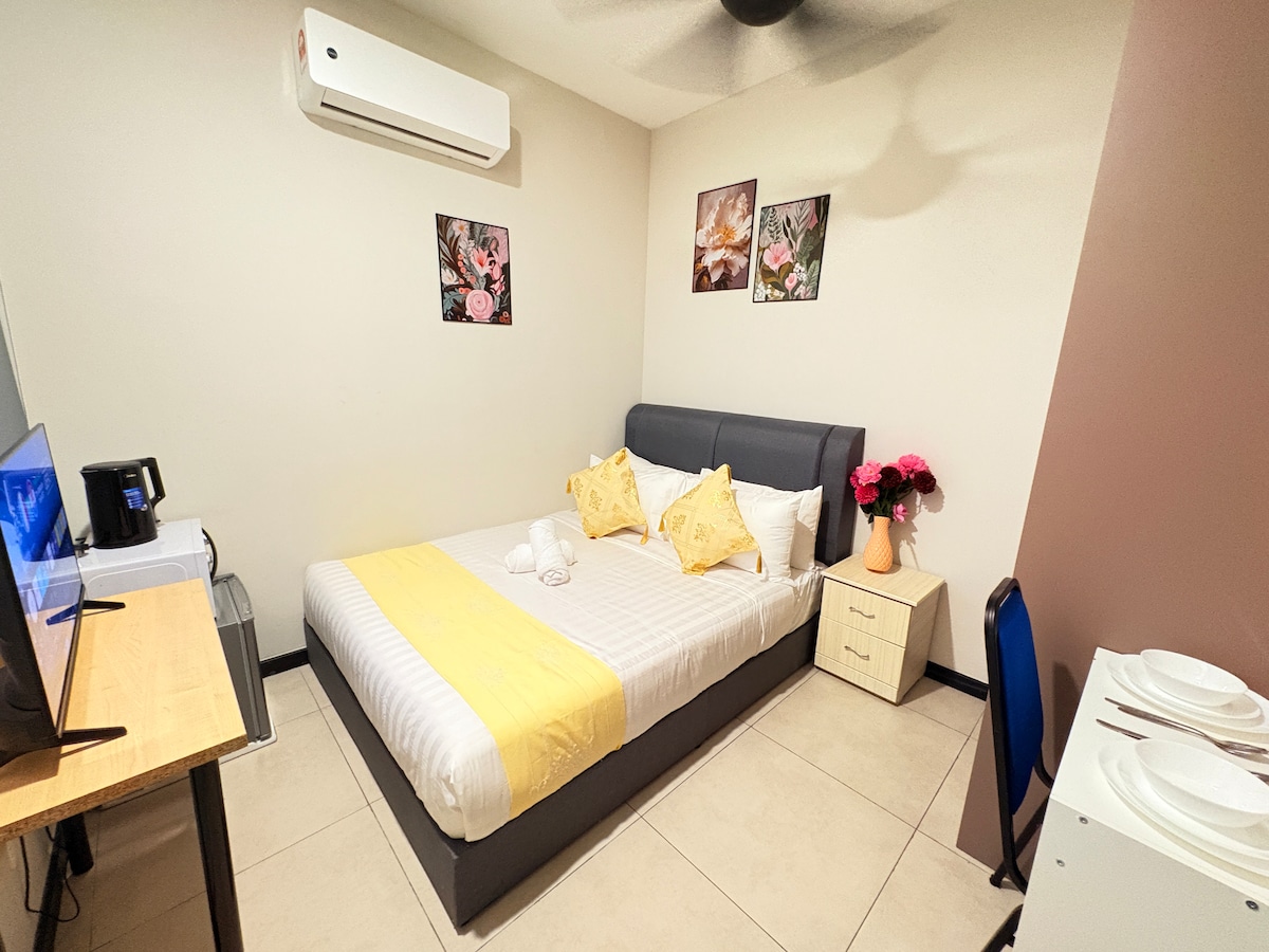 Discover a perfect blend of modern comfort and timeless charm at our Airbnb retreat. Enjoy seamless access to amenities, including a poolside barbecue pit, and a spacious patio for unforgettable family bonding at night. Stay connected with provided WiFi and Netflix, and indulge in light cooking. > 3 min drive to MITEC Exhibition Centre > 5 min to Publika Shopping Centre > 10 min drive to KLCC [ 1 car park will be provided. Extra car please request with us. Subject to availability ]