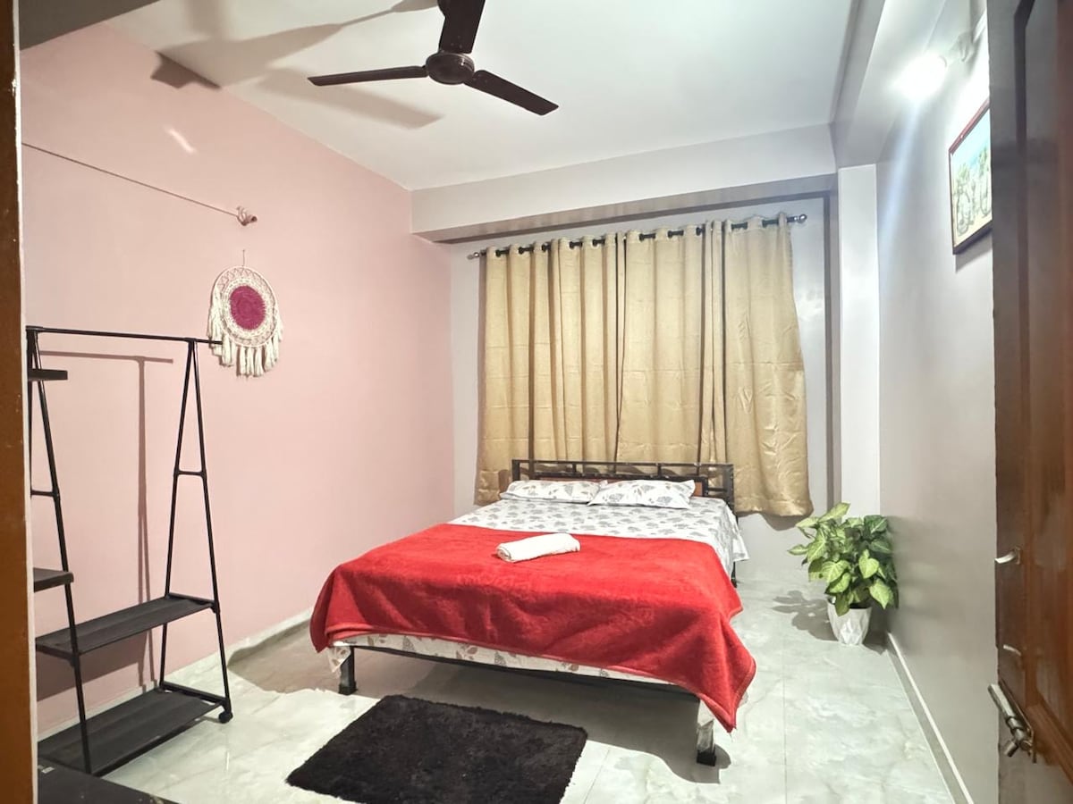 1BHK private home with separate entry around peaceful residential areas in the Guwahati City. AC & NON AC both available 2bhk also available with one Room AC and another room Non AC . One King Size in the bedroom & one double bed in the dining cum living area . Additional charges per extra person after 2 guests applicable. Couple friendly , as long as the house rules are maintained for ages 18+ Female and 21+ Male Car parking is subject to availability.