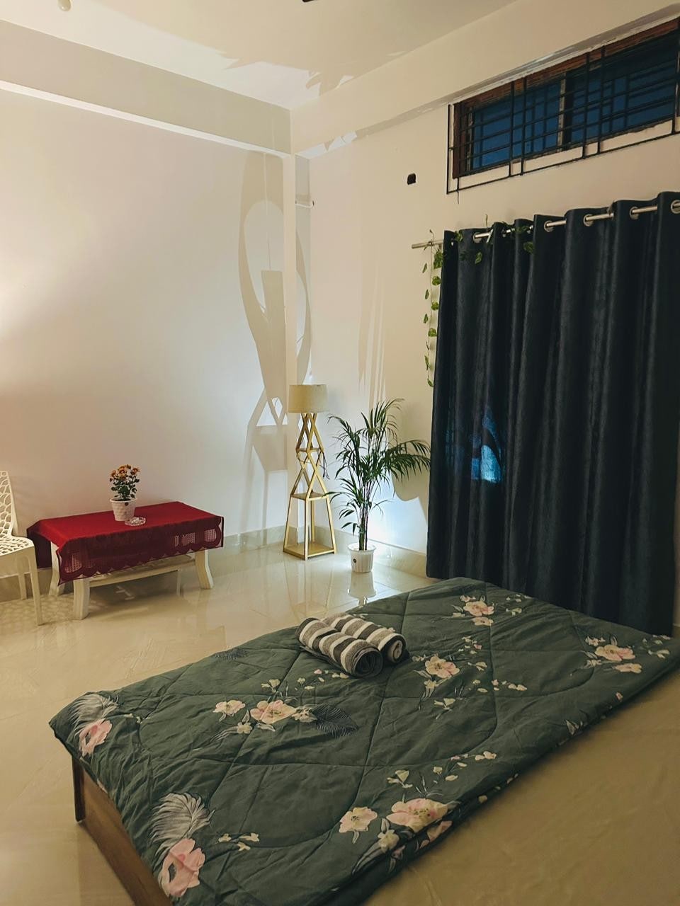 A peaceful, cozy & stylish homestay with a spacious bedroom, a hall cum kitchen, & an attached bathroom for family, couple or a group of 4-5 people. The stay comes with all the modern amenities like TV, WiFi, Geyser for a perfect homely stay; be it a private short or a longer holiday stay. The kitchen is well equipped to cook meals (15 min doorway online food delivery is also available). Located near the highway makes it an easy hassle-free entry and exit avoiding the city's tiresome traffic..