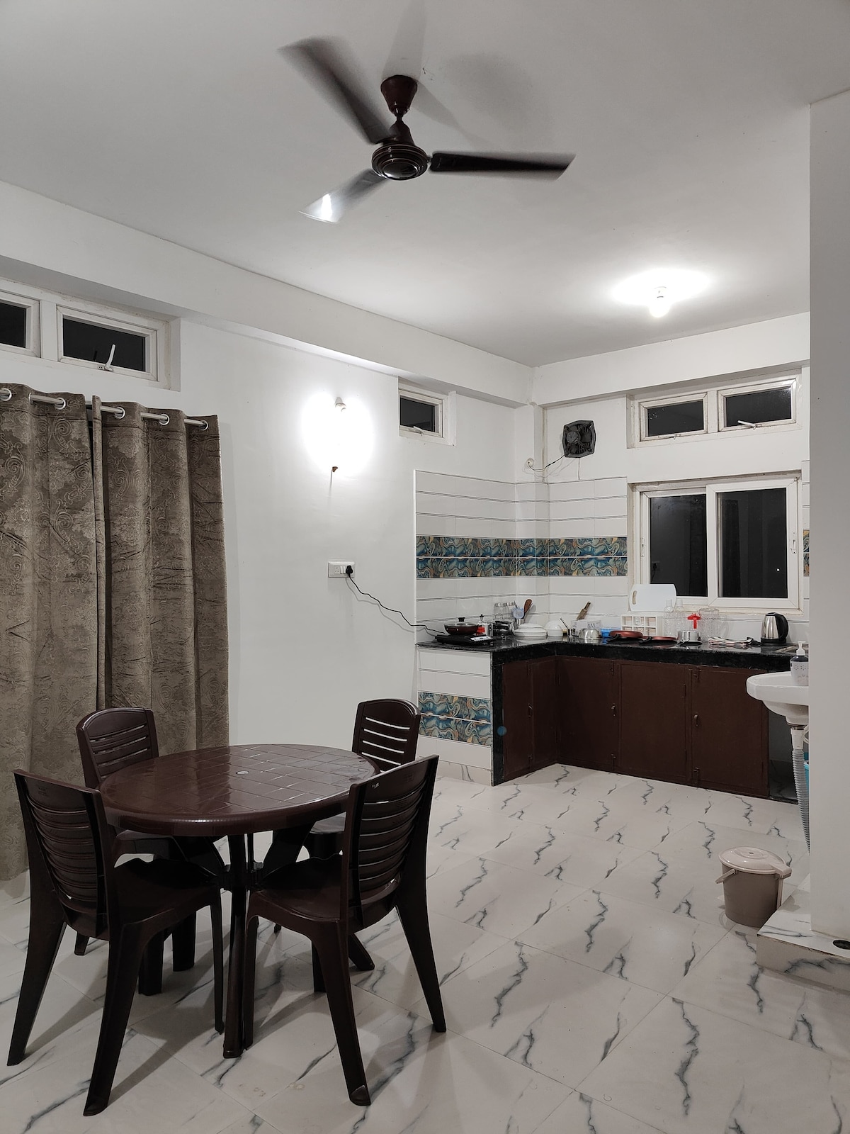 This is a 1BHK with attached kitchen and a living space with a sofa cum bed that accommodates 4 people. We have inverters and not generators. ACs do not run on inverters . Please keep that in mind while booking. If you are looking for privacy for a couple, look no further since we are couple friendly as well as family friendly.