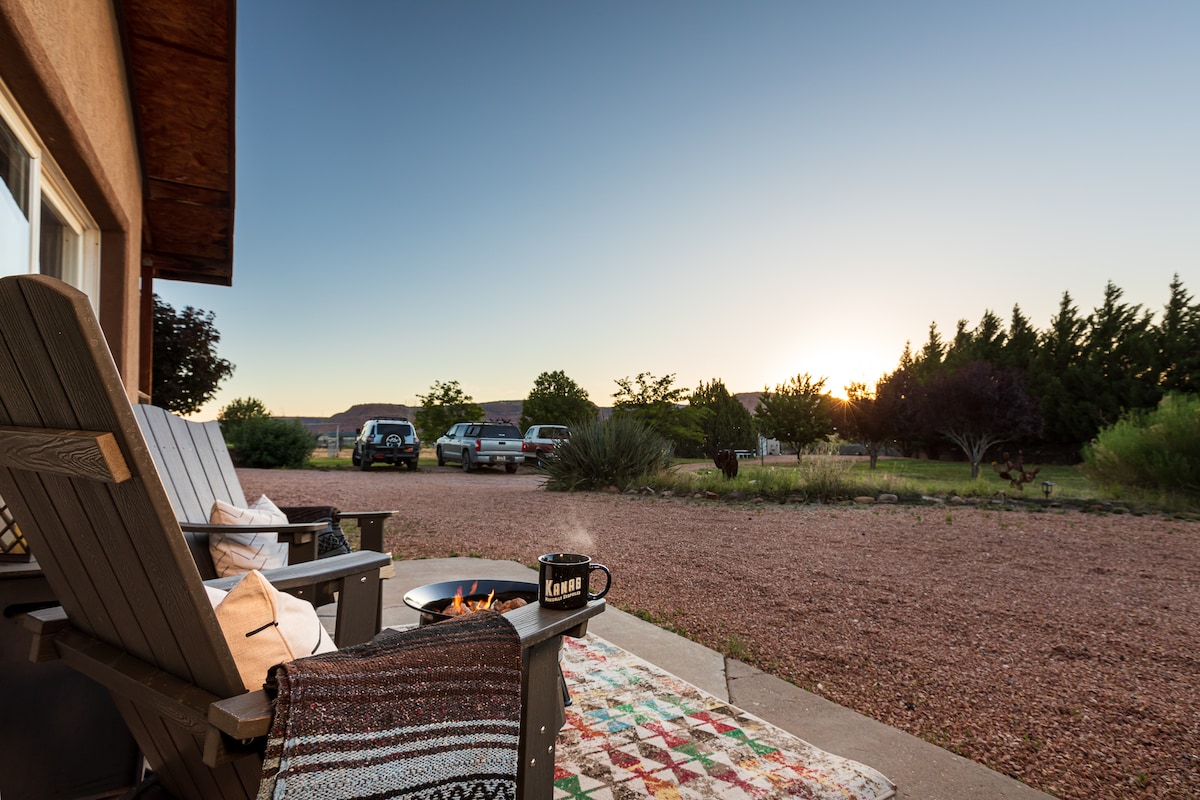 Kanab Pad is great whether you want to stay in and recharge or are exploring the surrounding beauty!! We've furnished it with the cook, baker, bartender, reader, adventurer, game player, and zen seeker in mind. The spacious property allows serenity and the homey comforts & unique touches will make it a memorable stay. The outdoor fire table provides a cozy evening retreat to unwind and town is only minutes drive away. Kanab Pad will make an excellent home base for your vacation adventures!