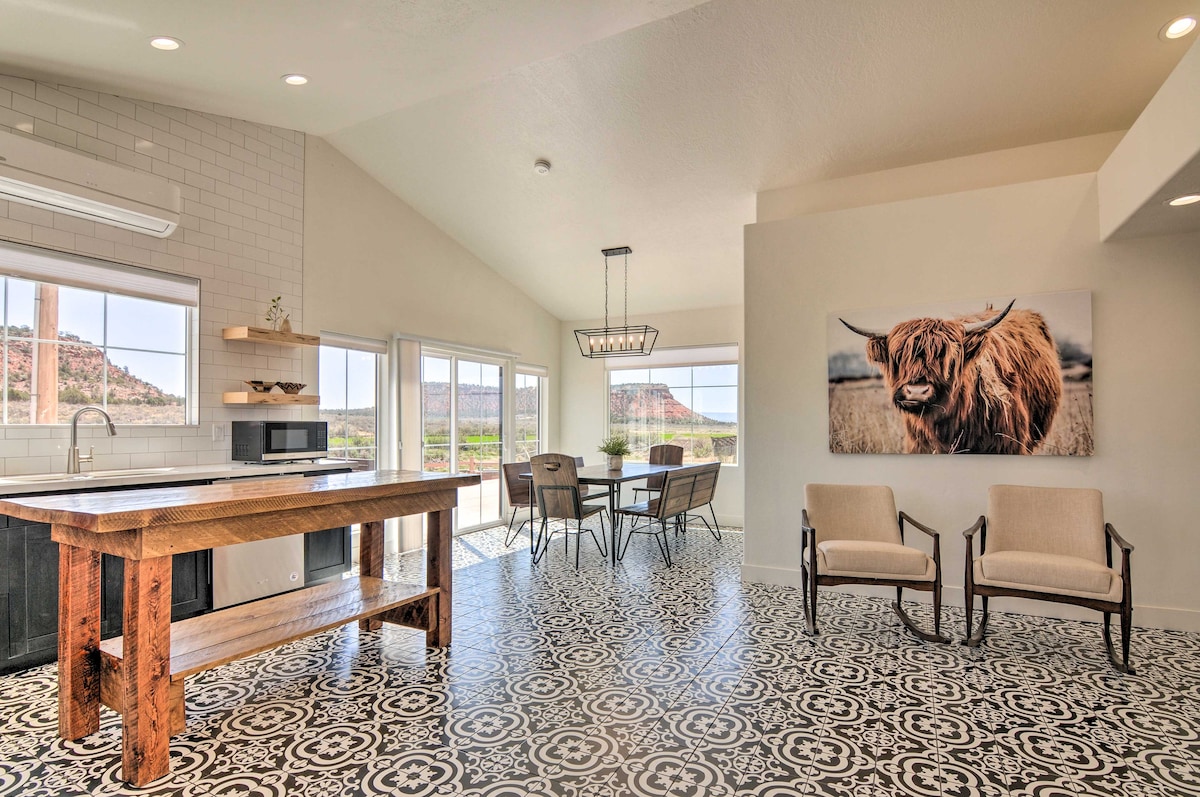 Experience the best of Southern Utah at this stylish 2,000+ sq ft, 4 bedroom/ 3 bath retreat in Kanab. Just 30 minutes to Zion National Park and near Bryce Canyon, Grand Canyon North Rim, Lake Powell, and Coral Pink Sand Dunes. Enjoy gallery-inspired design, panoramic red rock views, fiber WiFi, a full kitchen, and walkable access to downtown restaurants and local events. Ideal for families, couples, and road-trippers—your perfect basecamp for adventures.