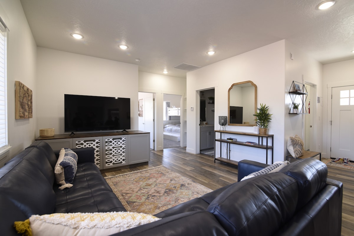 Experience the Kanab magic at Timber + Tin D! This modern gem offers two bedrooms and two bathrooms, and sleeps 6. Relax in resort-style comfort, enjoy shared amenities like the pool, hot tub, and recently restored, historic game barn and explore the wonders of Kanab and southern Utah. We're close to Zion, Bryce and The North Rim of the Grand Canyon National Parks, Antelope Canyon, Horseshoe Bend & other adventures in the area. This private resort has it all for your Southern Utah stay!