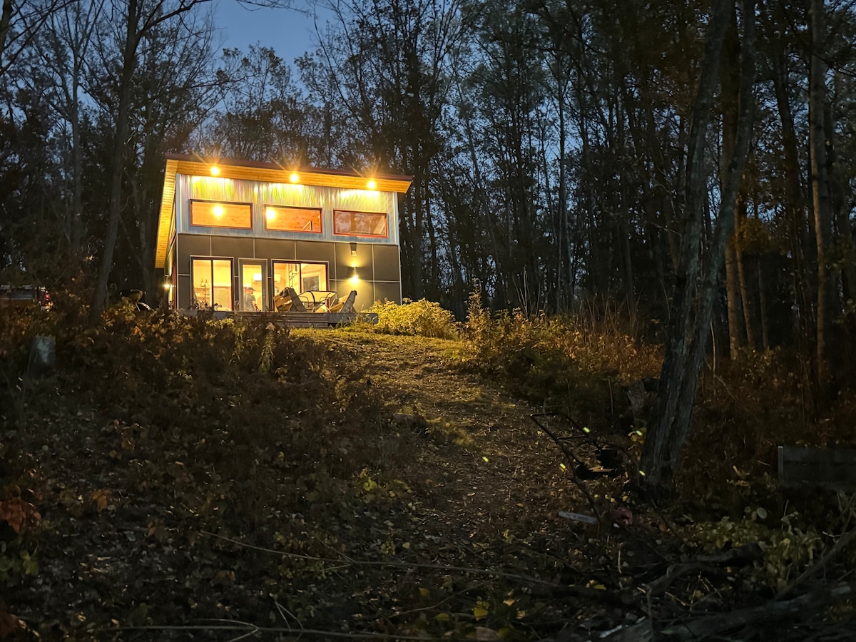 Happy Fall! Cosmo's Crossing- Come experience the peace of off grid tiny home living in this beautiful tiny barn tucked away in the woods. Perfect fall getaway for small families, romantic getaways and artists retreats. Begin your journey crossing the dock to your own hideaway and plan your adventures at the many surrounding state parks or bring your toys and fishing gear to hang out on Knife Lake located just a mile up the road. And don't forget to visit the many animals on the homestead.