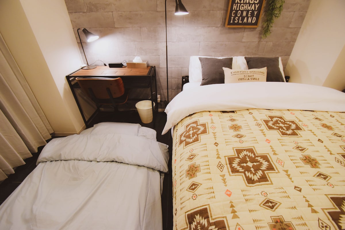 2024年9月新オープン!! 1ヶ月以上の連泊は無料清掃サービス提供中 🌟【長住割引のお知らせ】🌟 ご滞在が長くなるほど、お得になります! * 3泊:7% 割引 * 4泊:8% 割引 * 5泊:9% 割引 * 6泊:10% 割引 * 1週間以上:15% 割引 * 2週間以上:20% 割引 * 1ヶ月以上:30% 割引 * 8週間以上:35% 割引! また1階のレストランのクーポン券も無料配信中! こちらの広々としたお部屋は、家族やグループでの滞在に最適です。 2つの独立した寝室には、それぞれ2台のシングルベッドを備え、必要に応じて追加のベッドを配置することも可能です。 リビングルームとオープンキッチンが一体となった広々とした空間は、ゆったりとしたひとときをお過ごしいただけます。キッチンには電子レンジ、コーヒーメーカー、トースター、電気ケトルなどが揃っており、自炊を楽しむことができます。 モダンなバスタブ付きのバスルームと温水洗浄便座のトイレも完備し、快適なご滞在をサポートします。 全室に冷暖房が完備されており、季節を問わず快適にお過ごしいただけます。