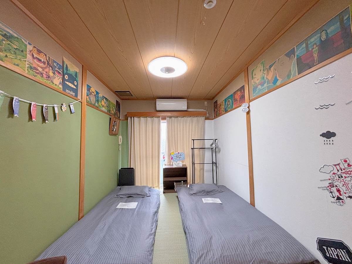 30平米的房间位于京王线上北泽车站220米,徒步3分钟处,位于商店街内。从新宿13分钟车程可以直达,去下北泽,豪德寺,吉祥寺、新宿、涉谷都很方便。 房东是一对上海夫妇,热爱设计房间。 走廊设有分离式卫生间和淋浴间,即便是多人入住也可以舒适地享受。2间房间由走廊连接,方便一家大小入住,在同一个屋檐下的不同房间但能方便听到家人的声音,中间没有房门,在意的人请不要预约。 最大可以5人入住,会感觉比较拥挤以及可能没有足够的行李空间。如果是五位成人超过三晚的入住您可能会感到压抑。 到新宿乘直达列车只需13分钟。房间旁边有中餐馆,对面是天妇罗和食,附近还有人气贝果店。附近有回转寿司、家庭餐厅和著名拉面店。便利店、大型超市、AEON商店均在步行3分钟内,生活所需一应俱全。 请在上北泽的住宿中,体验与当地人相同的生活,感受这个富有温暖的小镇的魅力。 上北泽站周边有美丽的樱花林,尤其在春天,会出现约300米长的樱花隧道会,吸引了来散步的人们。这条樱花林也被选为名胜世田谷百景之一,是当地居民和游客都喜爱的景点。