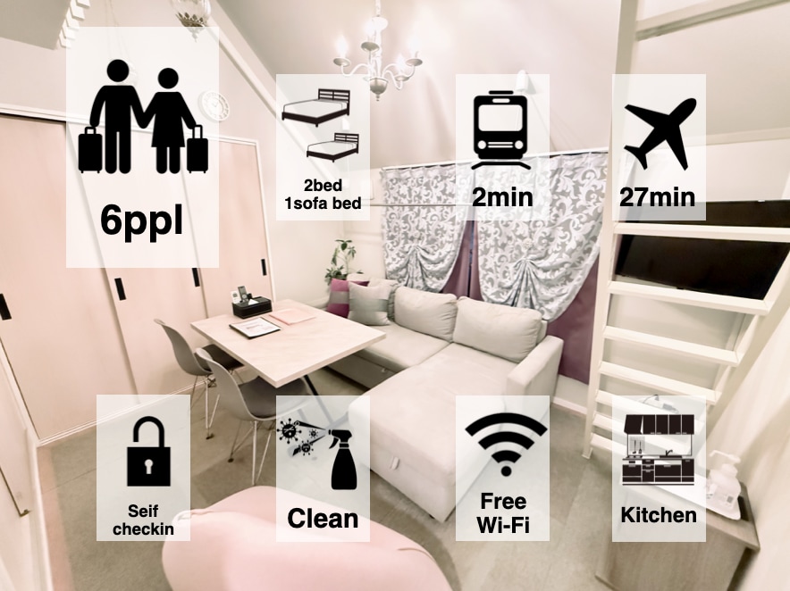[最多6人] 斯堪的纳维亚现代 / 1DK带阁楼 / 车站步行2分钟 / 品川303