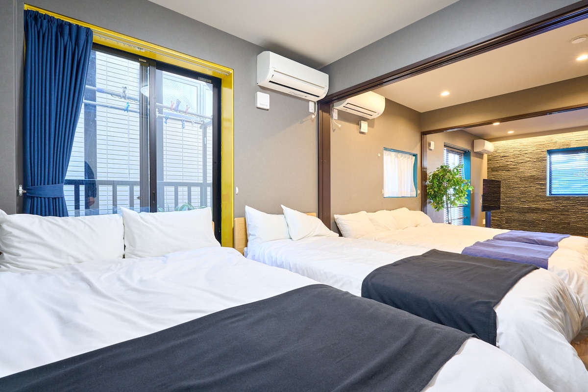 镰仓站步行3分钟|5人|匠心打造的舒适家庭住宿|可拼接特大床共享睡眠体验|50㎡宽敞优雅空间