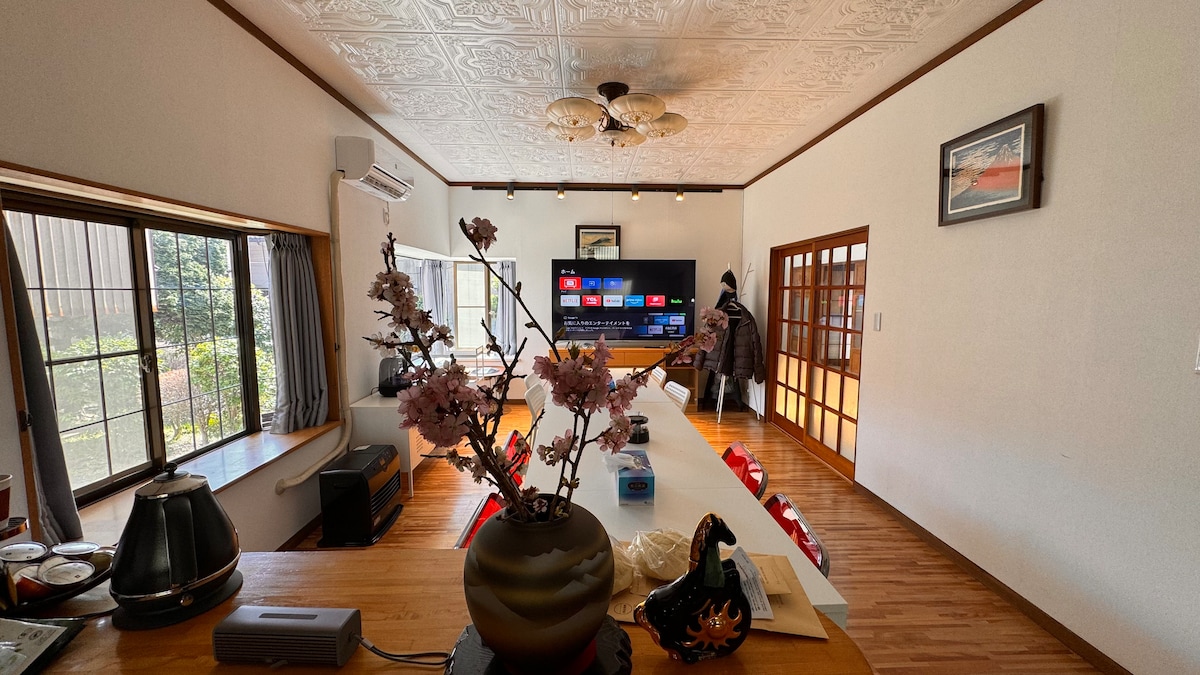 此栋别墅建于昭和年间,日本的建筑正处于日式传统风格向西洋风格过渡的时期。别墅客厅的粗厚的大梁及两间榻榻米房间充分的体现了日式建筑的特点,同时壁炉等设备及房子造型则体现了西洋对日本文化的影响。 房子最大的亮点是24小时源源不息地从源泉直接引入浴室的温泉。常流的温泉保持了温泉的新鲜度,24小时可随时入浴。温泉有官方的认定,弱酸性,基本无臭透明。 房子另一个特点是交通方便。从新宿站,羽田空港都有直达高速巴士。特别是在新宿乘车前购买箱根周游券还可以得到车票优惠,使票价基本等同坐浪漫特急。高速巴士舒适且可以放行李,对旅行者非常方便。高速巴士直达房子附近的“仙石高原"站,下车后步行4分钟即可到达。 仙石高原一带距离御殿场比较近,去御殿场奥特莱斯买东西或者去富士山方面也相对箱根其他地区方便很多。 *民宿徒步5分钟处有便利店 *可以停三辆普通车 *高速光缆,免費Netflix