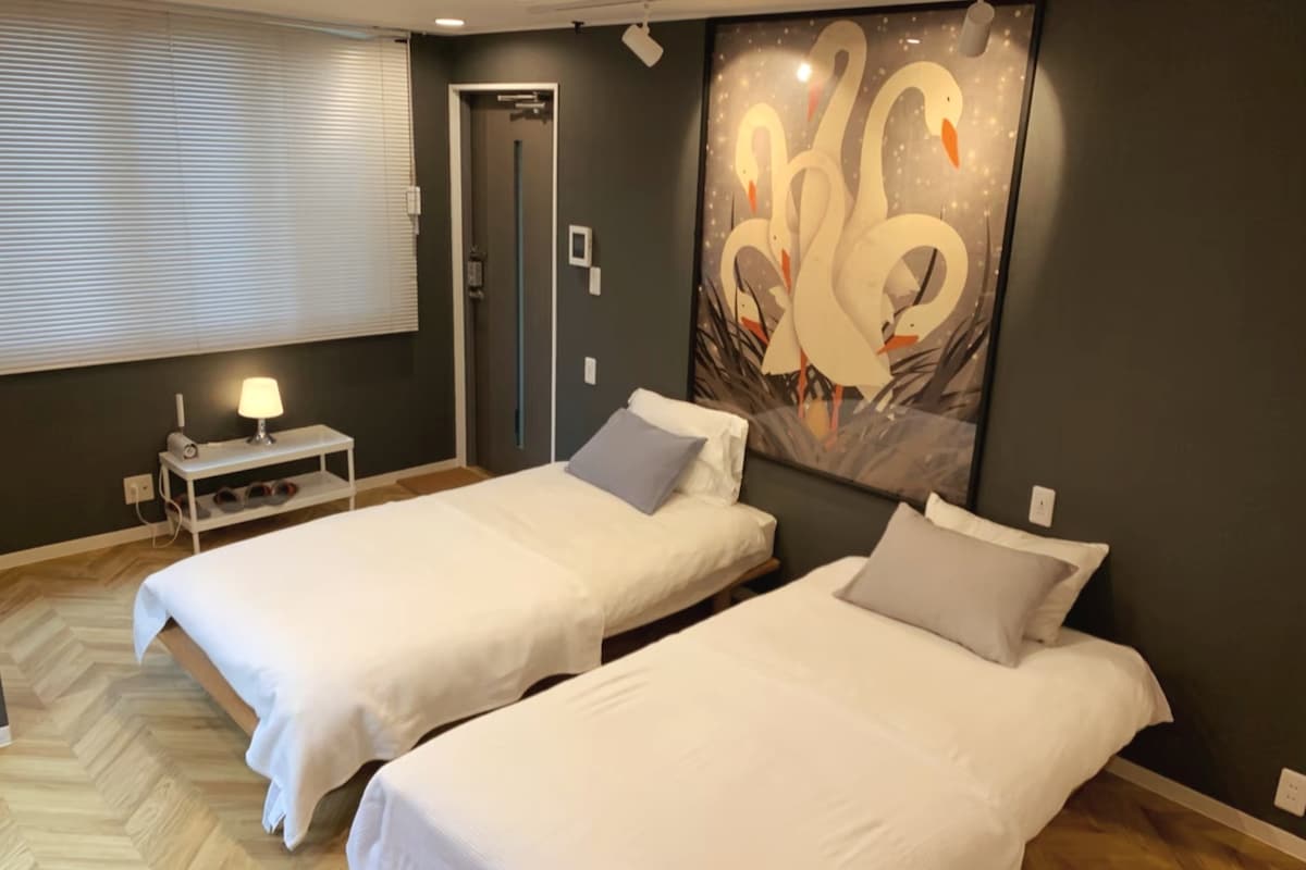 The inn has a total of eight private rooms on three floors. There is a large kitchen and dining area on the first floor, and private rooms on the second and third floors. The building is also equipped with its own washing machine and dryer. The facility is also equipped with comfortable facilities for mid- to long-term sightseeing and business trips. The kitchen on the first floor is equipped with a household refrigerator, freezer, microwave, electric kettle, cooking utensils and dishes.