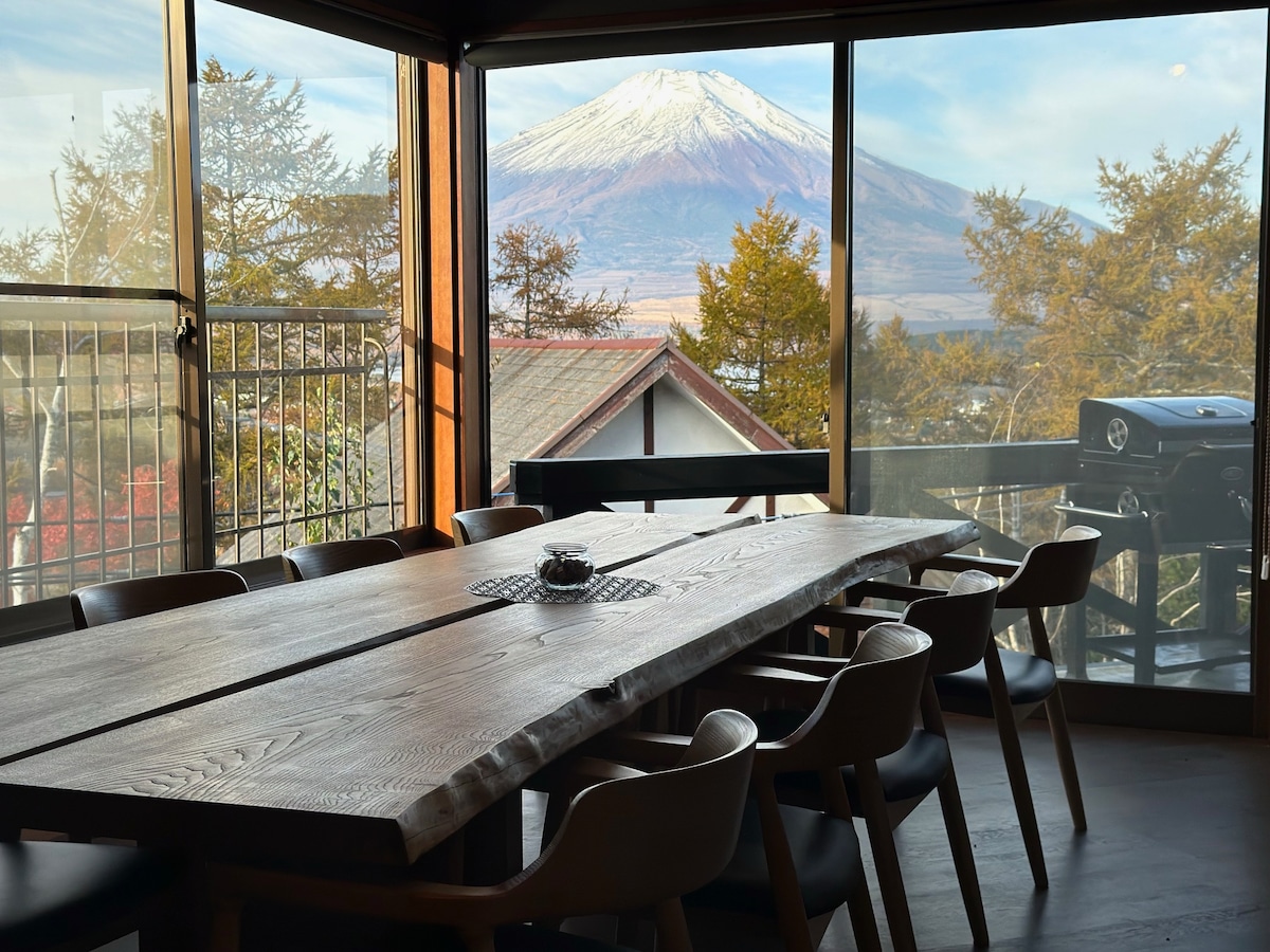 壮観、富士山、山中湖、家具職人の無垢テーブル、BBQ、10名貸切、山中湖IC20分、河口湖IC30分