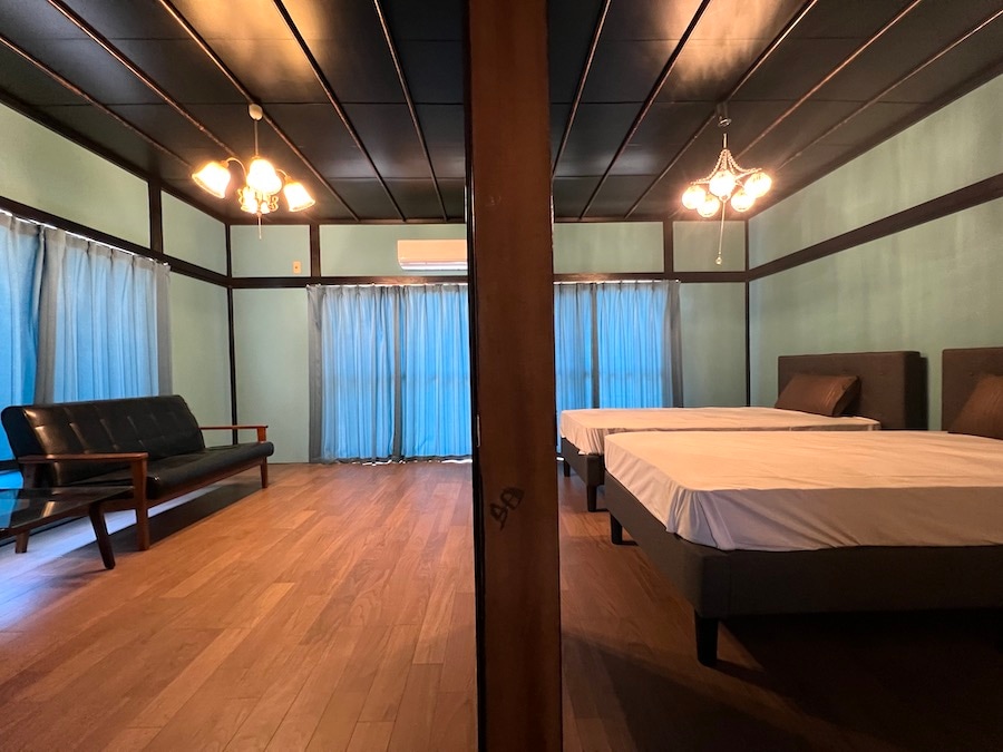ホテル江ノ島アパートメント 昭和レトロなアパートをリユースしたエコフレンドリーなコミュニティホテルです。 【102号室】ベッドを3つ並べてゴロゴロできるお部屋(40㎡)。 湘南の海近くで仲間や家族と自由な旅が楽しめます! 特徴 □江ノ島や鎌倉へのアクセスがいい □グループ旅行(最大6名)に最適! □キッチン付きでみんなで料理が作れる♪ □レンタルサイクルが無料 □アーリーチェックイン&レイトチェックアウトに対応(※要予約) 江ノ電の湘南海岸公園駅から徒歩6分の江の島の海や観光スポットや鎌倉観光にもアクセスの良い立地です。 東京都内からも約1時間、美味しい食事を食べて、絶景を眺めて、潮風を感じながら散策して、1日中たっぷりと湘南でのアパート暮らしを満喫できます♪ ※エコ活動 地球環境に優しいホテルを目指して、各資源のリユースや節約を始め、様々なエコロジー活動に取り組んでいます。