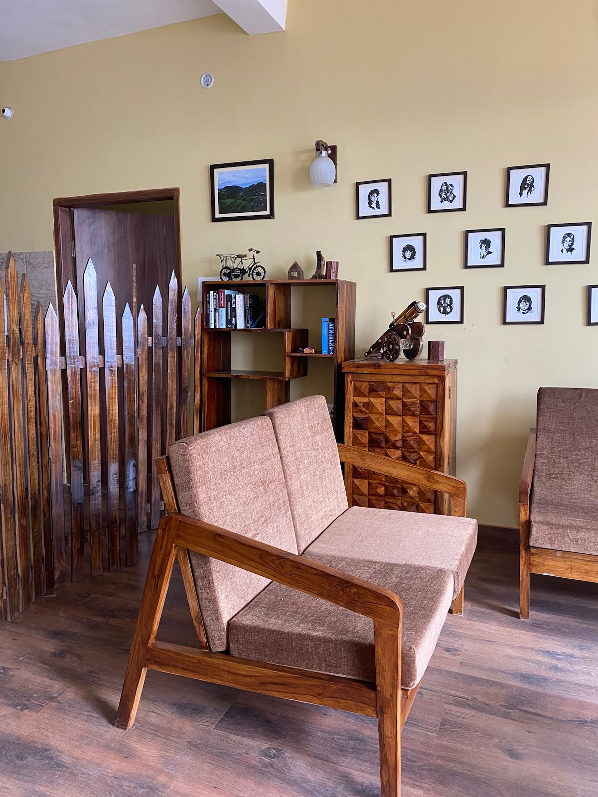 Set in lush green surroundings you will get a farmhouse feel with beautiful gardens and orchards. In the garden we have many fruit trees and seasonal organic vegetables. It is a ground floor unit with one small bedroom along with a private kitchen, a bathroom along with a private verandah where the guests can sit and enjoy nature while sipping on hot tea. It is a perfect fit for solo travelers on a budget.