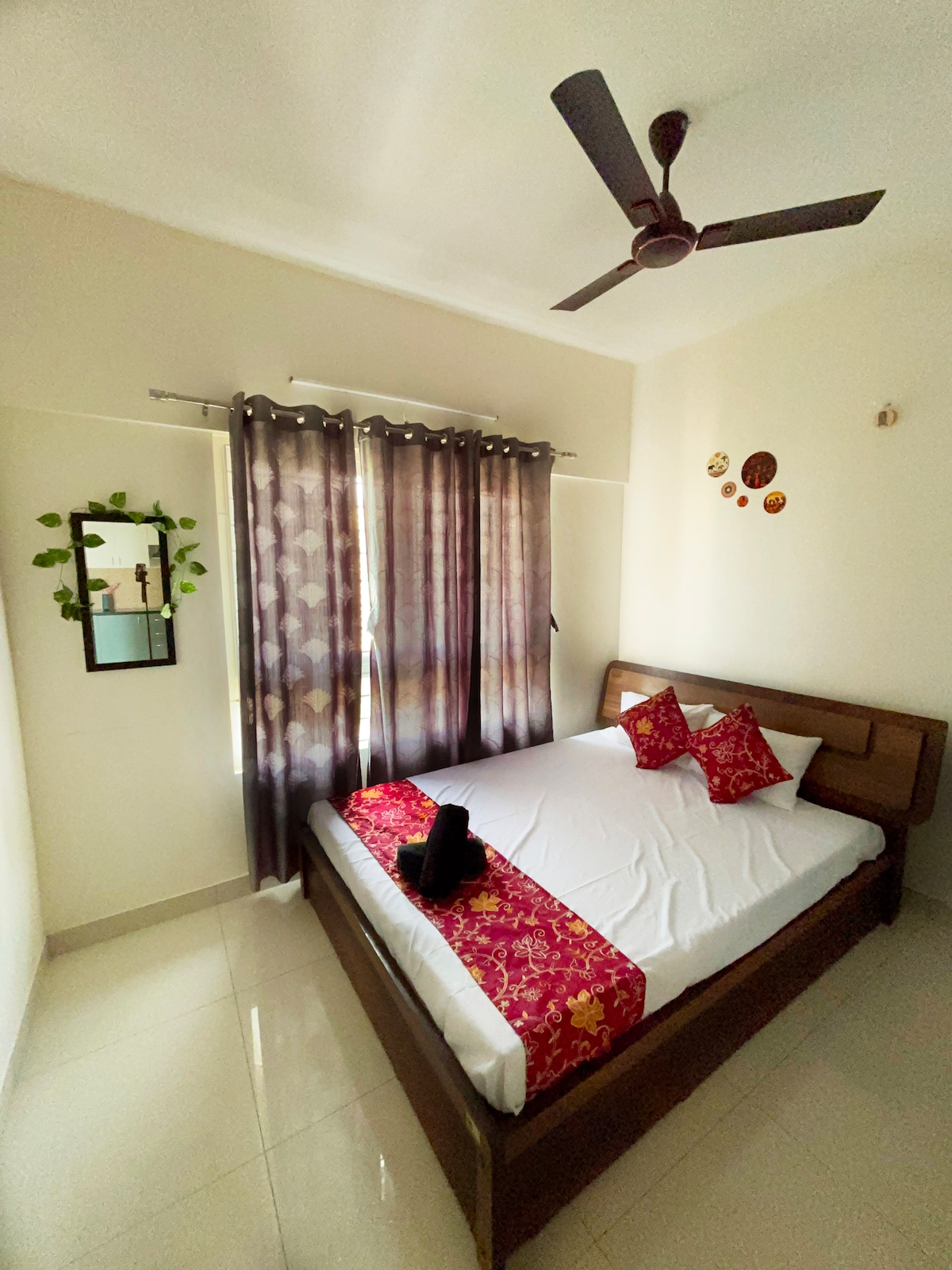 The house is located in a safe area and away from the hustle & bustle of the city and nestled in the sub urbs of the IT highway . It has ample windows and 2 balconies. It is very spacious and very calming . Lots of sunlight and great air flow. All necessary amenities are available including smart TV , fridge, washing machine, microwave oven, high speed wifi, CCTV etc. You will feel like its a home away from home.