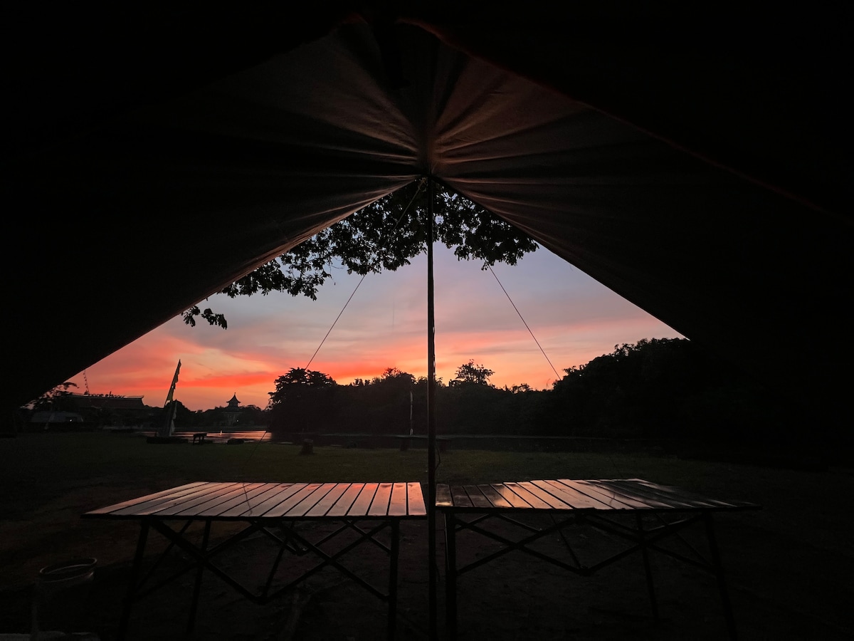 花园,河景帐篷。
