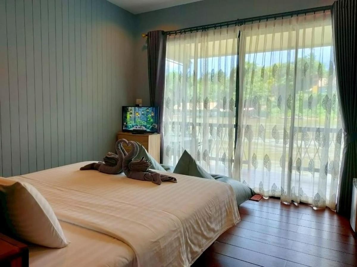 🌿Escape to a serene hideaway in the heart of Ban Tai, Kanchanaburi. Our hotel offers clean, stylish rooms situated above a cozy café and a relaxing Thai massage shop, providing everything you need for a rejuvenating stay. 🛏️Your Private Room - Bright, air-conditioned space with comfortable queen or twin bed - Ensuite bathroom with hot shower and essential amenities - Large windows or balcony offering calming garden or street views - High-speed Wi-Fi, smart TV, and a small work-friendly desk