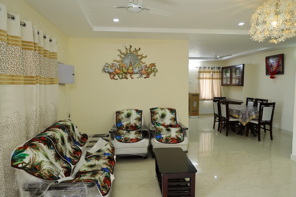 Clean and cozy 1 BHK House in the heart of Vijayawada's Gandhi Nagar, 27 Mints to Internl AIRPORT by car, very near to Railway station, Bus stand, and Besant Road malls.Fully furnished features an AC, king-size bed, an extra bed, sofa set, Wifi, TV, Hot water and kitchen with required vessels for cooking. Cook yourself. Ideal for solo travelers, small family, or business guests. Safe, peaceful, and centrally located, 24x7 water and CCTVs. Perfect home after home. Home made Brkfast and Meals avlb