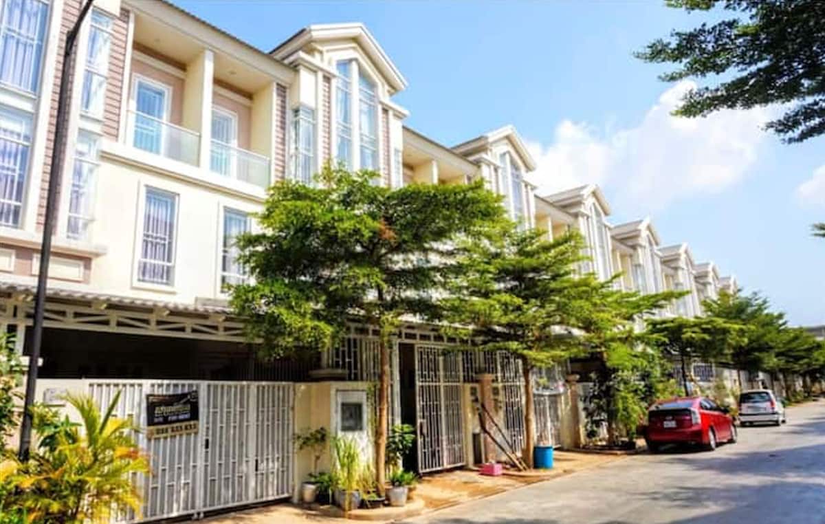 Newly renovated 4-story, 3-bedroom house. Each room is generously sized and filled with natural light, thanks to the expansive window design. This modern and airy house is perfect for large groups or long stays looking for comfort & convenience. Located in the heart of Phnom Penh, 🚕 enjoy easy access to parks, shopping centers, diverse restaurants, historical monuments, & local activities. 📍Please note: there's no Wi-Fi on the premises. ✨Open to hosting smaller groups at a discounted rate.