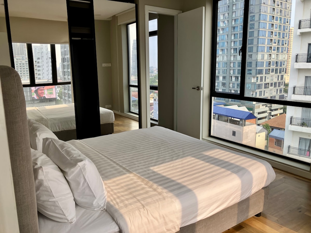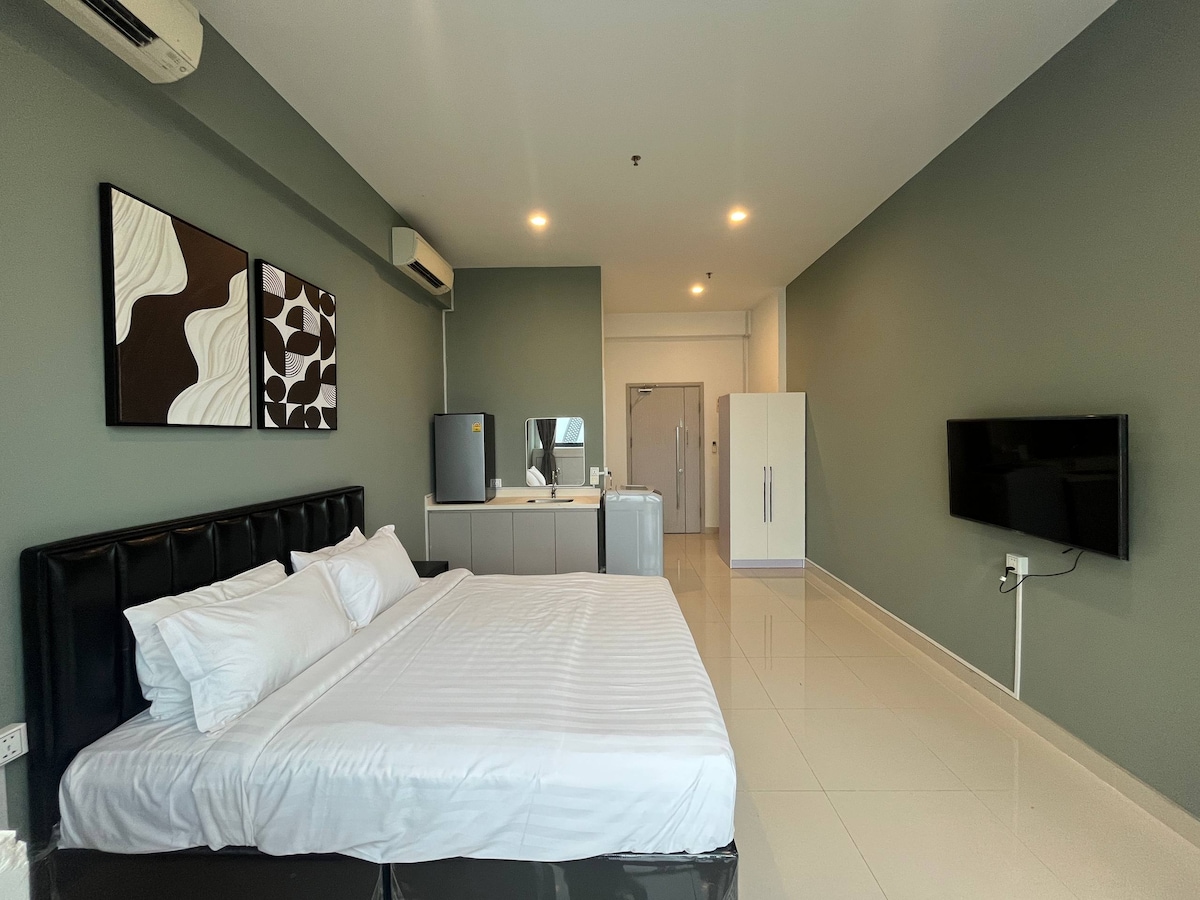 This newly built apartment offers the perfect combination of beauty and convenience. Close to Russian Boulevard and directly north of Royal Phnom Penh University, with a spectacular view of the Toul Kork Cityline. Our comfortable 120 x 200 matrace provides a restful sleep and our team will make sure you have a wonderful stay every time. This unit features a 22 sqm space plus 6sqm Loft layout. Exceptional views from 17th floor. Up to date interior, designed around the discerning guest.
