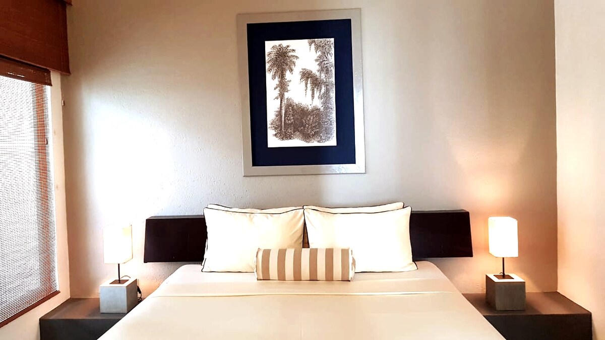 La Casa del Sol, our new cycladic apartment adding to the world renowned The Boutique Villas Collection, unique architectural pieces inspired by civilisation all around the world added together with first class hospitality. Set in hustle and bustle away from town centre, a tranquil one bedroom villa with roof top plunge pool set up in Cycladic architecture only to imagine you're in a Greek island such as Mykonos or Santorini, yet surrounded with a tropical garden.