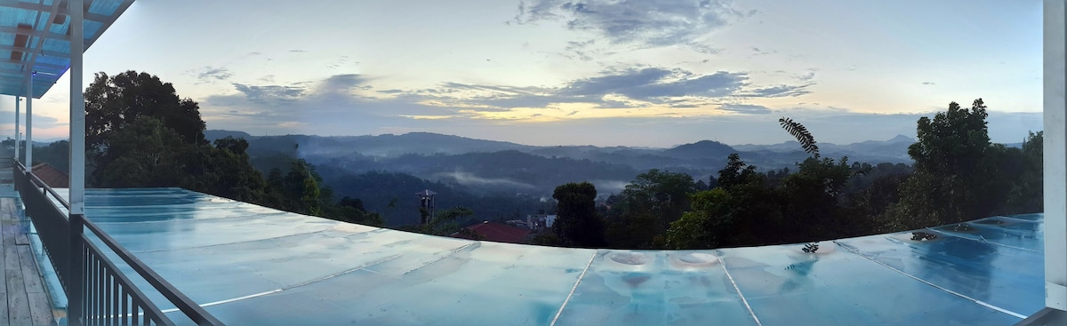 Enjoy a lustrous 'Candle-light Dinner' at a private terrace while looking over to the beautiful panoramic view of the Kandyan city and hills, listening to your favourite blues at "The Sky View Bungalow". Moon & Sky over the face while you sleep on Big large Beds, Beautiful Mountain View while you bathe, Sun set view and tea at private Balcony, Sky View has it all. Living space with TV, Kitchen facing the hills, a very large bathroom and a kind staff awaits to be on service..
