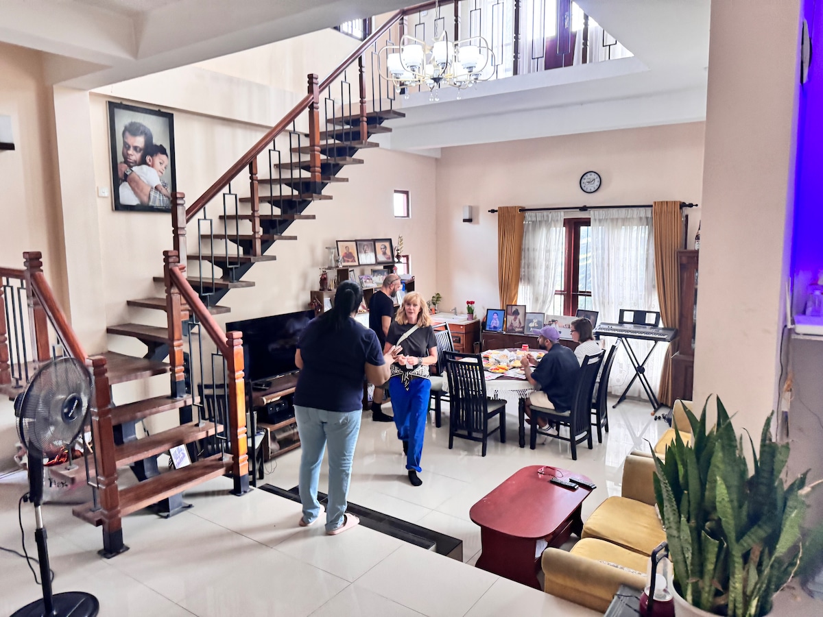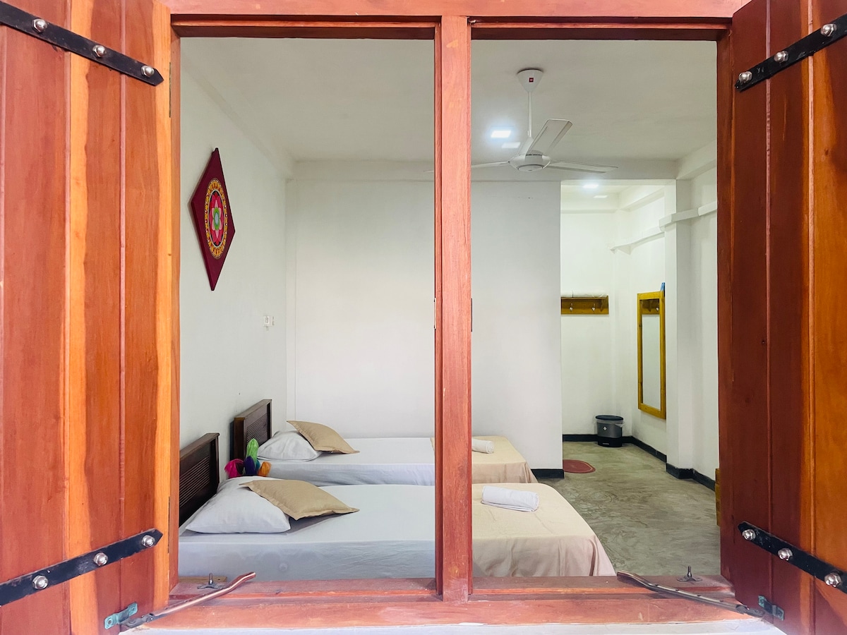 Keep it simple at this peaceful and centrally-located guesthouse . We are a ten minute walk to downtown Kandy, and five minutes from Udawatta Kele Sanctuary jungle. With three bedrooms, and two bathrooms, this home sleeps four people comfortably. From the living room you can enjoy beautiful, panoramic views of famous Big Buddha and Hanthana Mountain. Delicious breakfast can be made to order for an additional fee. We offer train station pickup 500,000LKR. Please inquire with any questions.