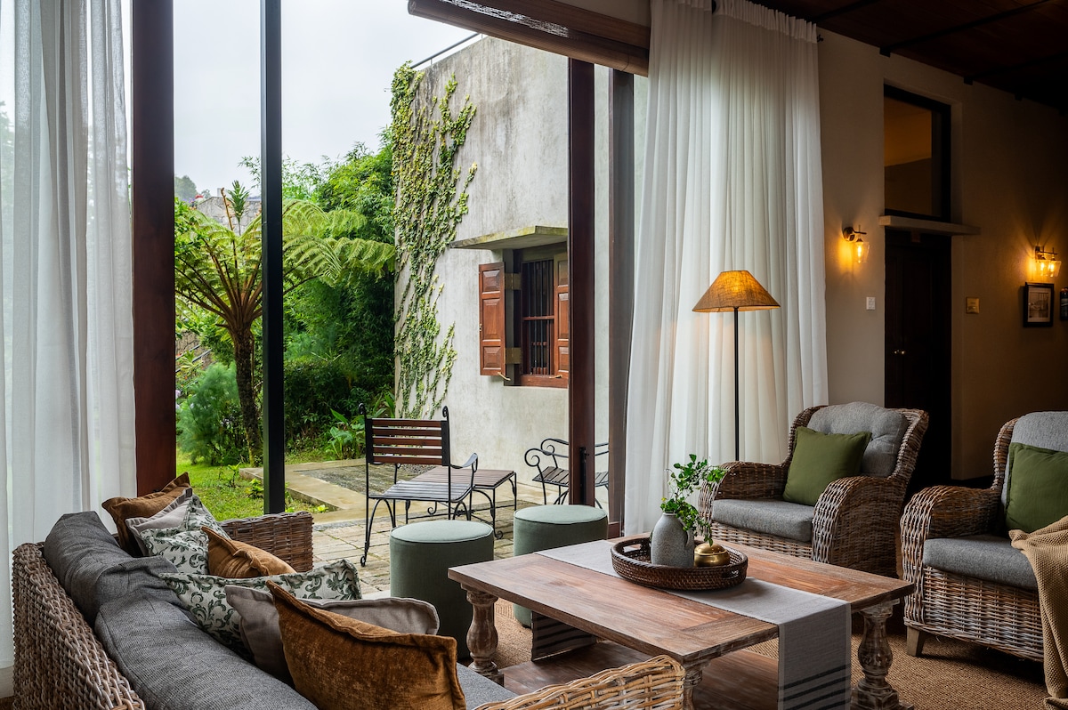 Escape to Aqua Pavilion at Kandy Victoria Eco Resort, one of the best boutique hotels in Kandy, Sri Lanka. This luxurious room features a private balcony and a chill tub, offering stunning views of Victoria Reservoir and lush mountains. Enjoy the perfect blend of traditional and modern architecture, complimentary breakfast, and serene surroundings in a calm residential area. Guided hikes, free bicycles, and personalized service complete your unforgettable stay.