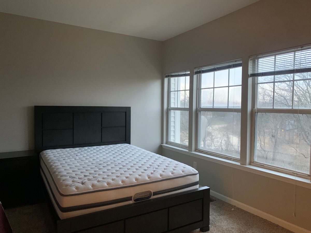 Private office, high speed internet. EV Charger. Spacious,King Bed.Great outdoor space, fire pit, Indoor fireplace. Close to towns. Great weekend getaway. Great rate. Close to two beautiful parks, huge soccer field, water splash park, slide and swing and etc. Mins away from to the fox river trail. Less than 2 miles away from beautiful downtown Geneva, historic shopping district with over 160 specialty shops and restaurants. Less than 3 miles away from another beautiful downtown of St. Charles.