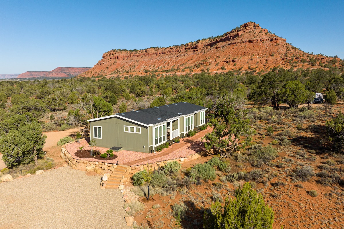 Wake up to panoramic views of brilliant red cliff buttes and protected public land at this artfully designed southwest retreat on 4.5 acres. Thoughtful architecture, picture windows, curated artwork, and modern amenities create an inspiring, restorative stay. Ideally positioned for day trips to Zion, Bryce Canyon, and Grand Canyon National Parks, plus the region’s iconic national monuments. Experience beauty, space, the quiet of uninterrupted desert surroundings, and dark, star-filled skies.